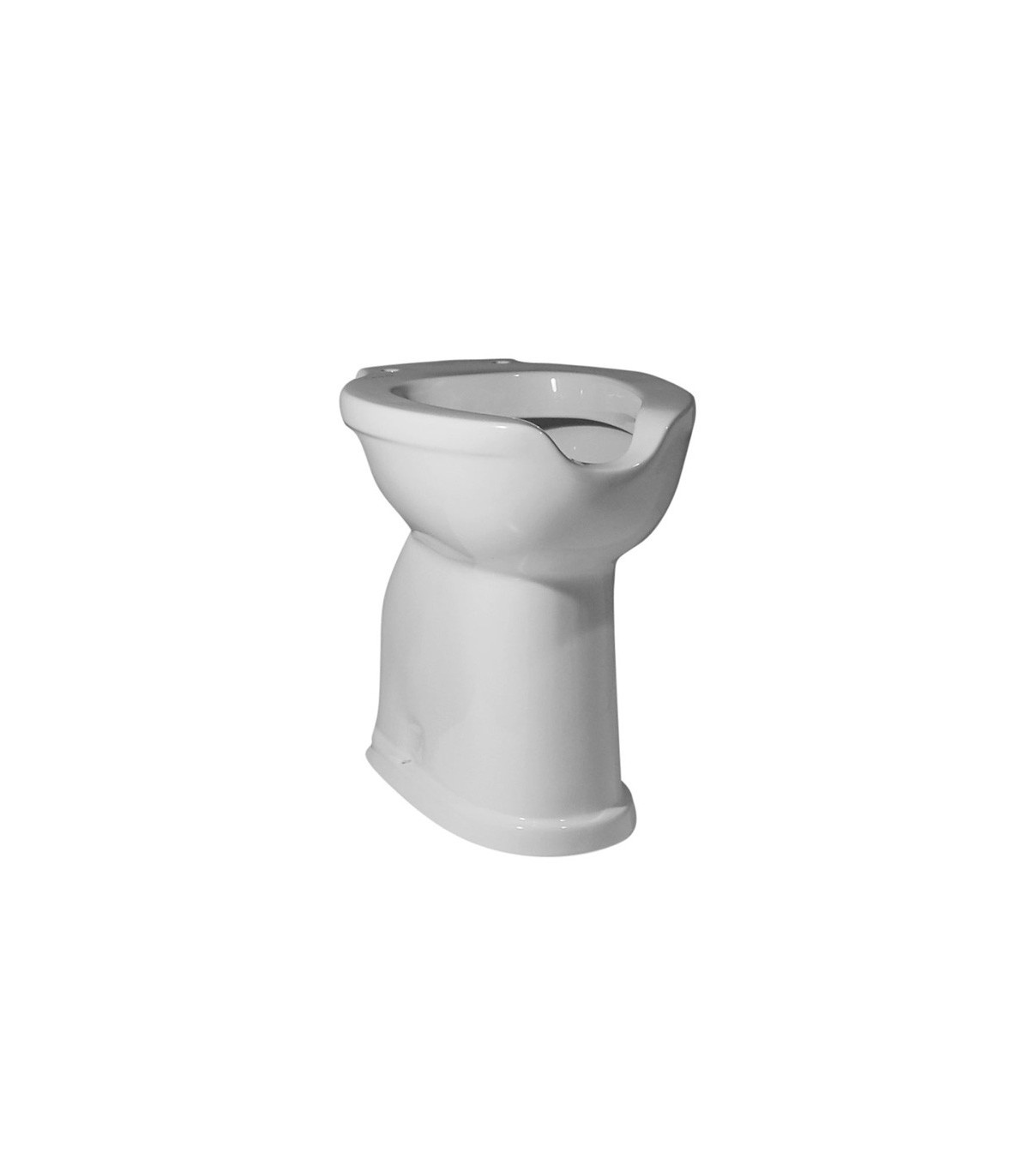 Inodoro para tanque alto, fluxómetro o cisterna empotrada, con apertura frontal que permite la higiene íntima y desagüe al suelo o a la pared. Altura de 50 cms que facilita la transferencias de personas con movilidad reducida. NO INCLUYE cisterna ni tapa asiento.