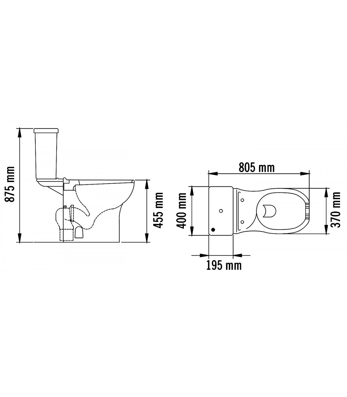 MEDICLINICS Inodoro Completo con altura especial que facilita las transferencias de personas con movilidad reducida. Dispone apertura para la higiene íntima. Salida desagüe horizontal o vertical. Disponible en dos alturas, 505 mm y 455 mm.