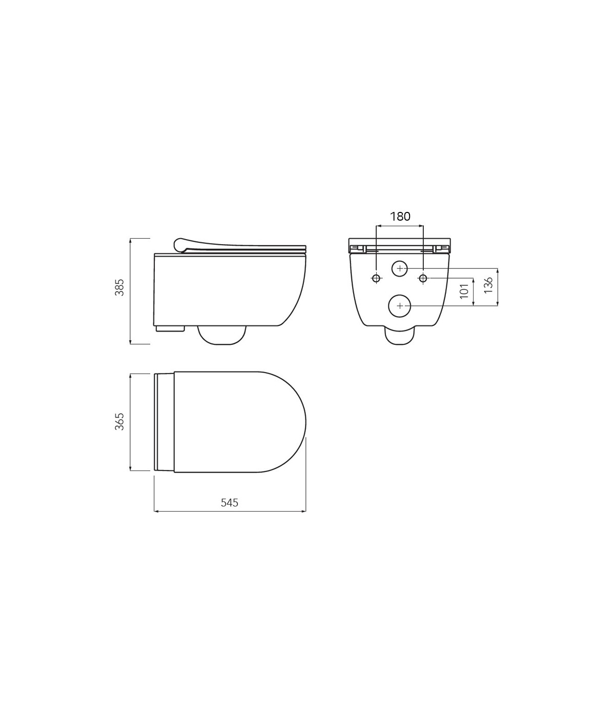 Inodoro suspendido compacto modelo MANHATTAN. La parte frontal tiene una moderna y elegante forma redondeada. El pack está compuesto por: taza suspendida con juego de fijaciones y asiento extraplano con caída amortiguada. Acabado en cerámica blanco brillo.