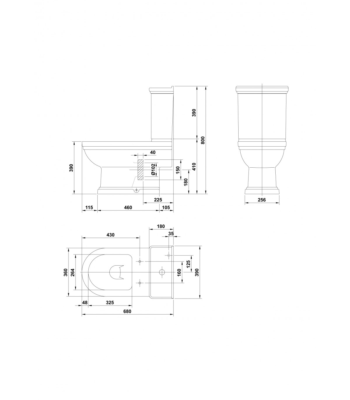 Características del Producto. Inodoro salida dual con juego de anclaje. Tanque bajo con tapa, mecanismo de doble pulsador 6/3 litros y alimentación inferior izquierda