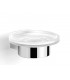 Accesorio de baño fabricado en latón cromado brillante con contenedor de cristal satinado.