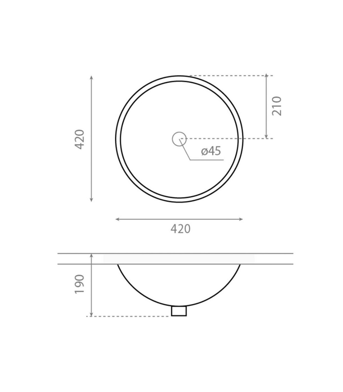 Lavabo Bajo Encimera Redondo modelo CERDEÑA B con medidas 42x19 cms. Color blanco. Rebosadero integrado.