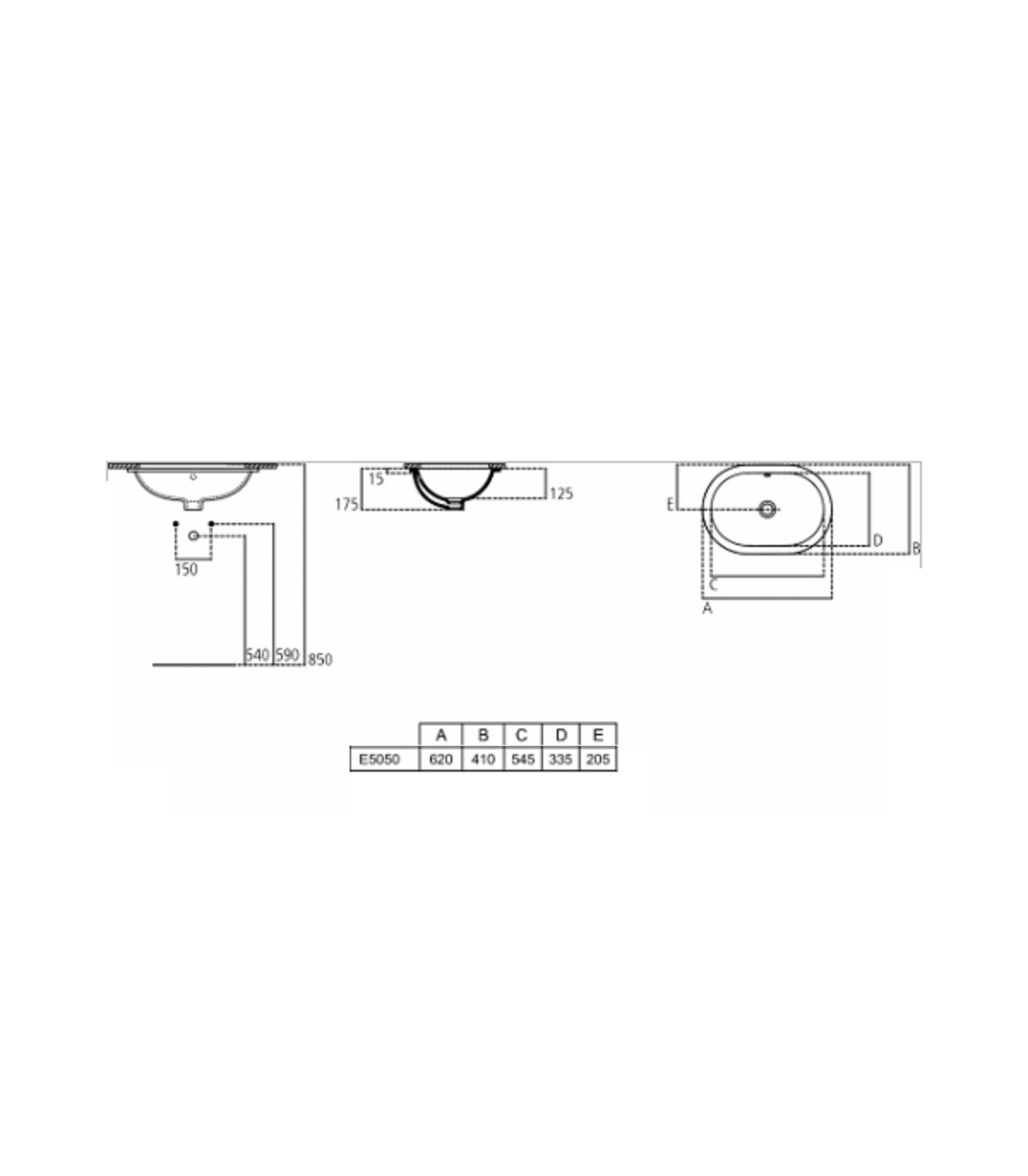 IDEAL STANDARD E505001 CONNECT Lavabo Bajo Encastre 62 Ovalado