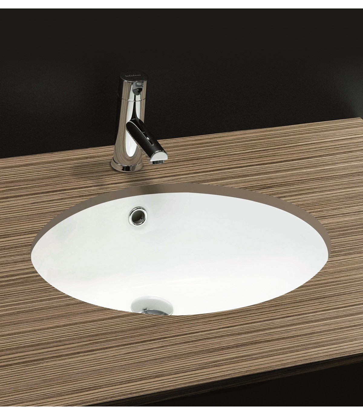 ECLIPSE Lavabo ovalado de porcelana blanca para colocar bajo encimera. Medidas 51x34 cms. No incluye válvula ni sifón.