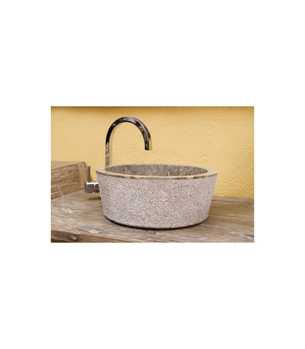 Lavabo de piedra sin rebosadero, para colocar en encimera y sin espacio para la grifería.