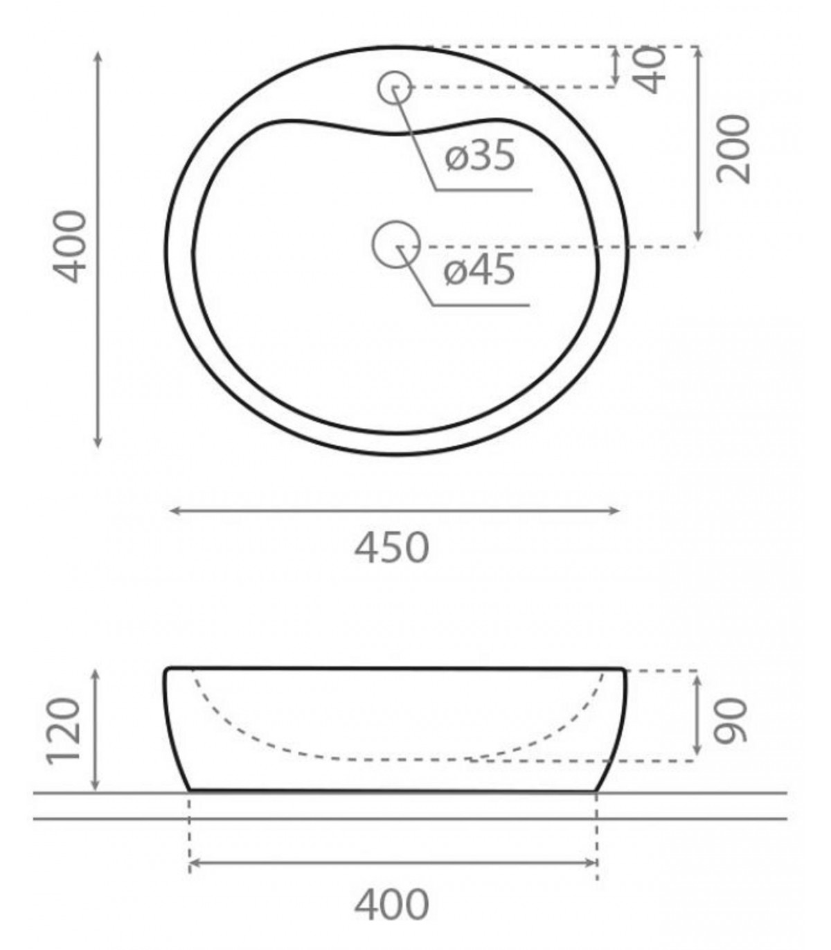 SANTORINI lavabo de encimera fabricado en piedra beige, con espacio para grifería de repisa. Medidas 45x40x12 cms.