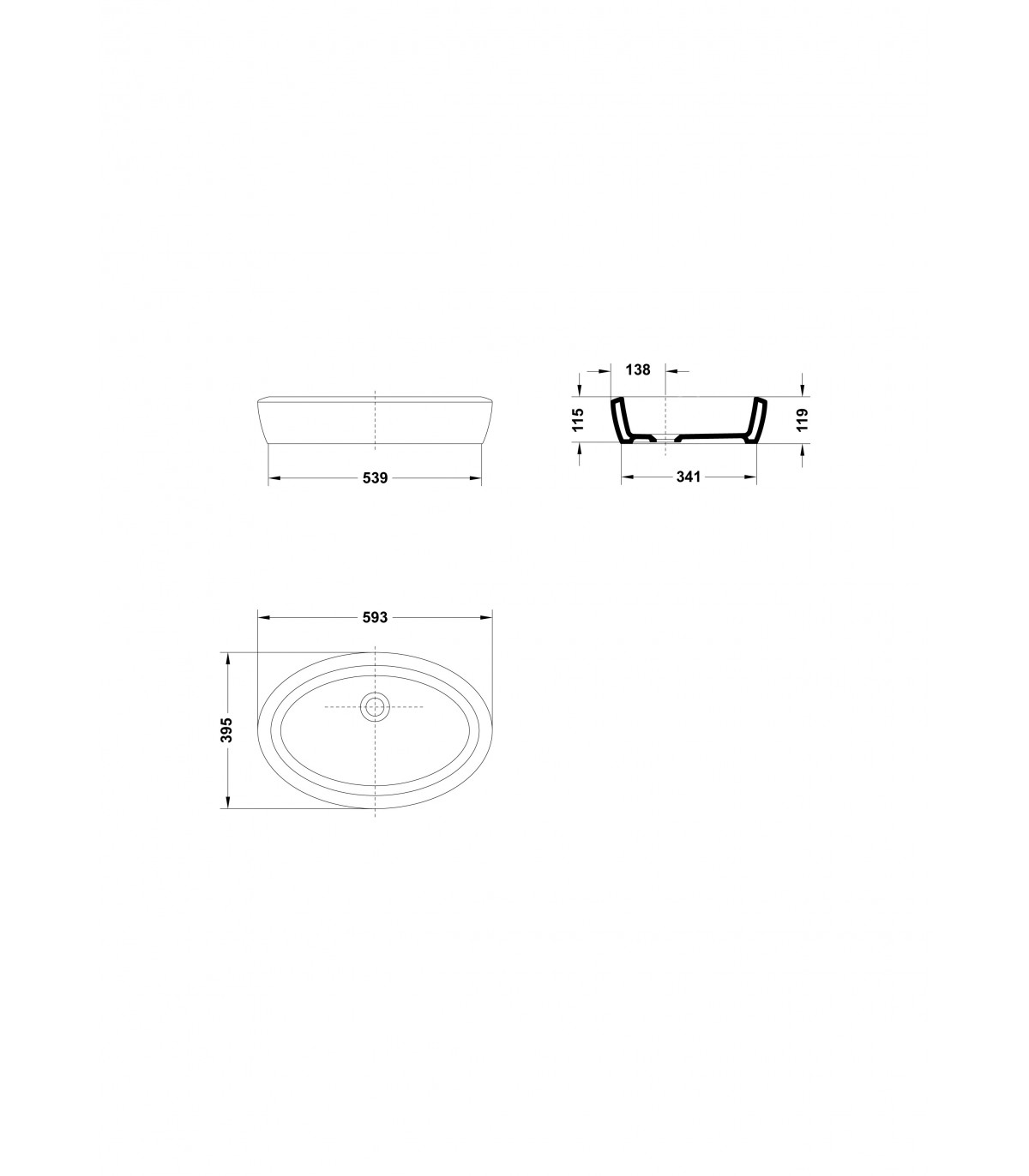 EOS Lavabo de sobre-encimera OVALADO 59,3x39,5 cm.
