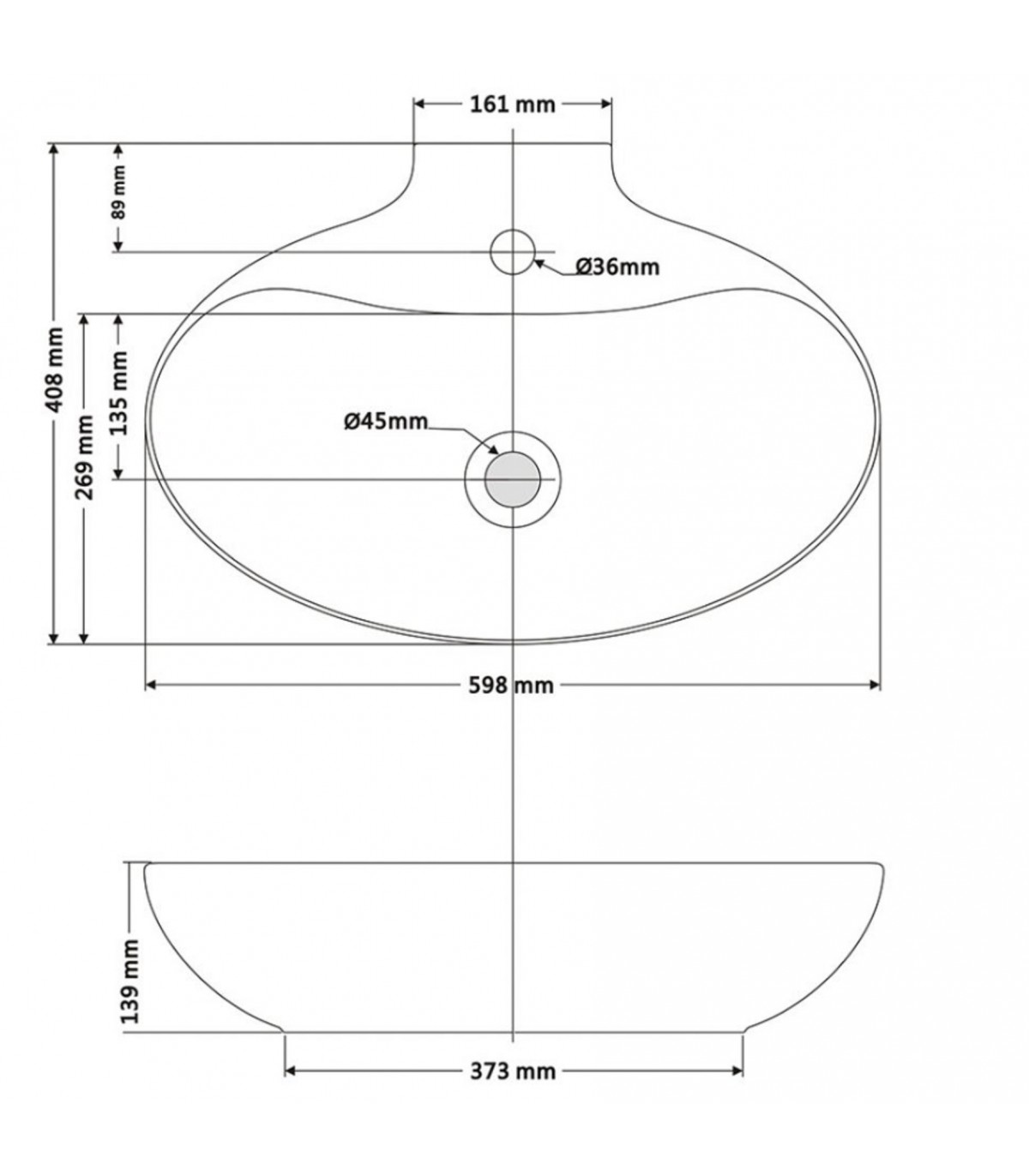 Lavabo Oval NEW MALAGA 598x408x139 mm