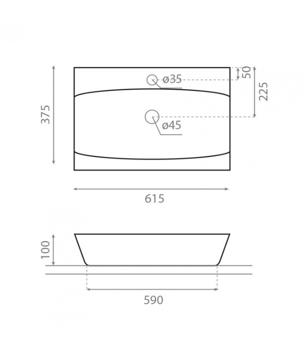 Lavabo Rectangular SARDINERO 61,5x37,5x10 cms