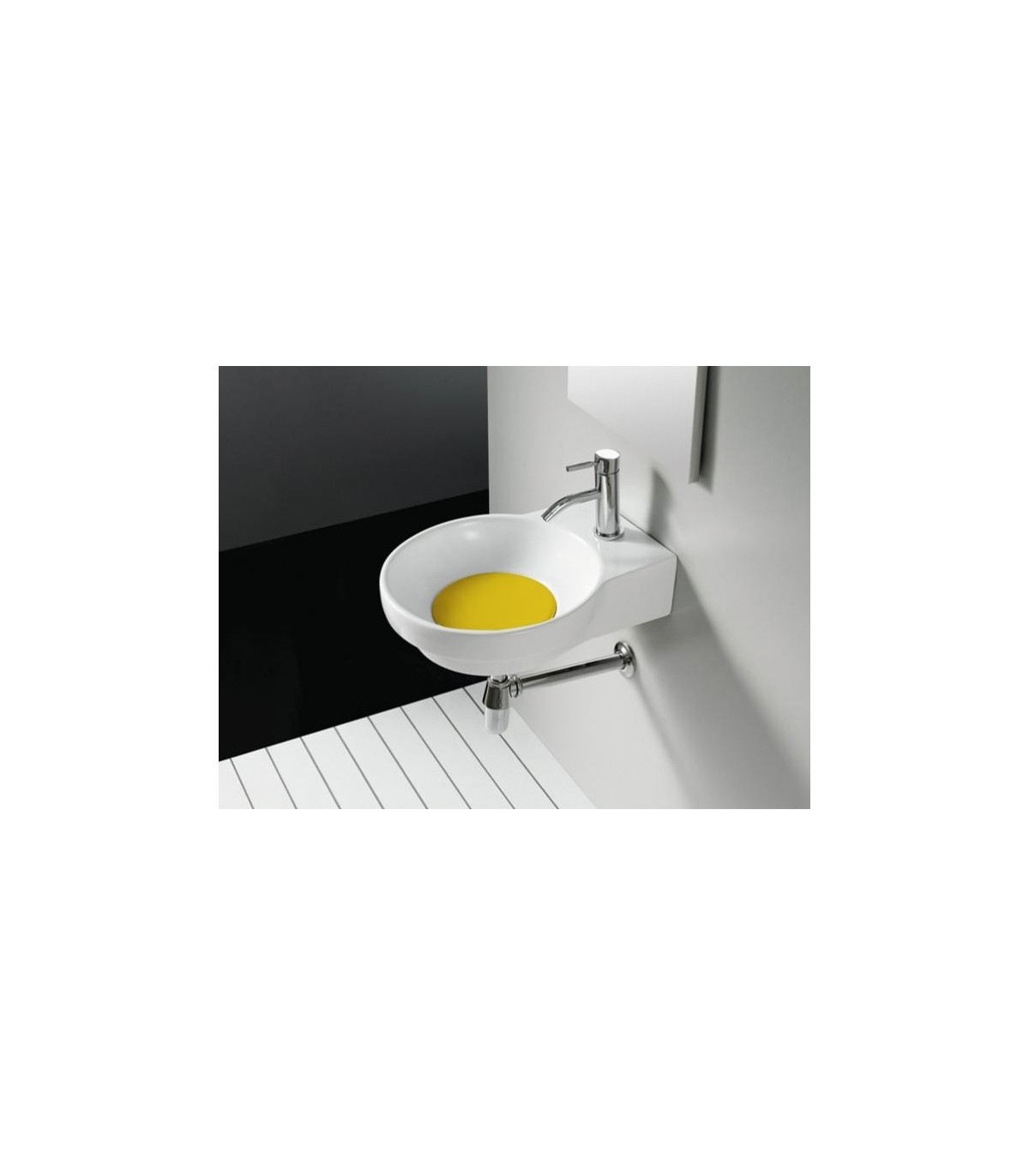 MARSELLA es un lavabo de porcelana inspirado en la sensillez y elegancia. Con la posibilidad de colocar sobre encimera o a la pared.Su desagüe oculto, nos permite combinar la porcelana blanca, con un toque de color.
