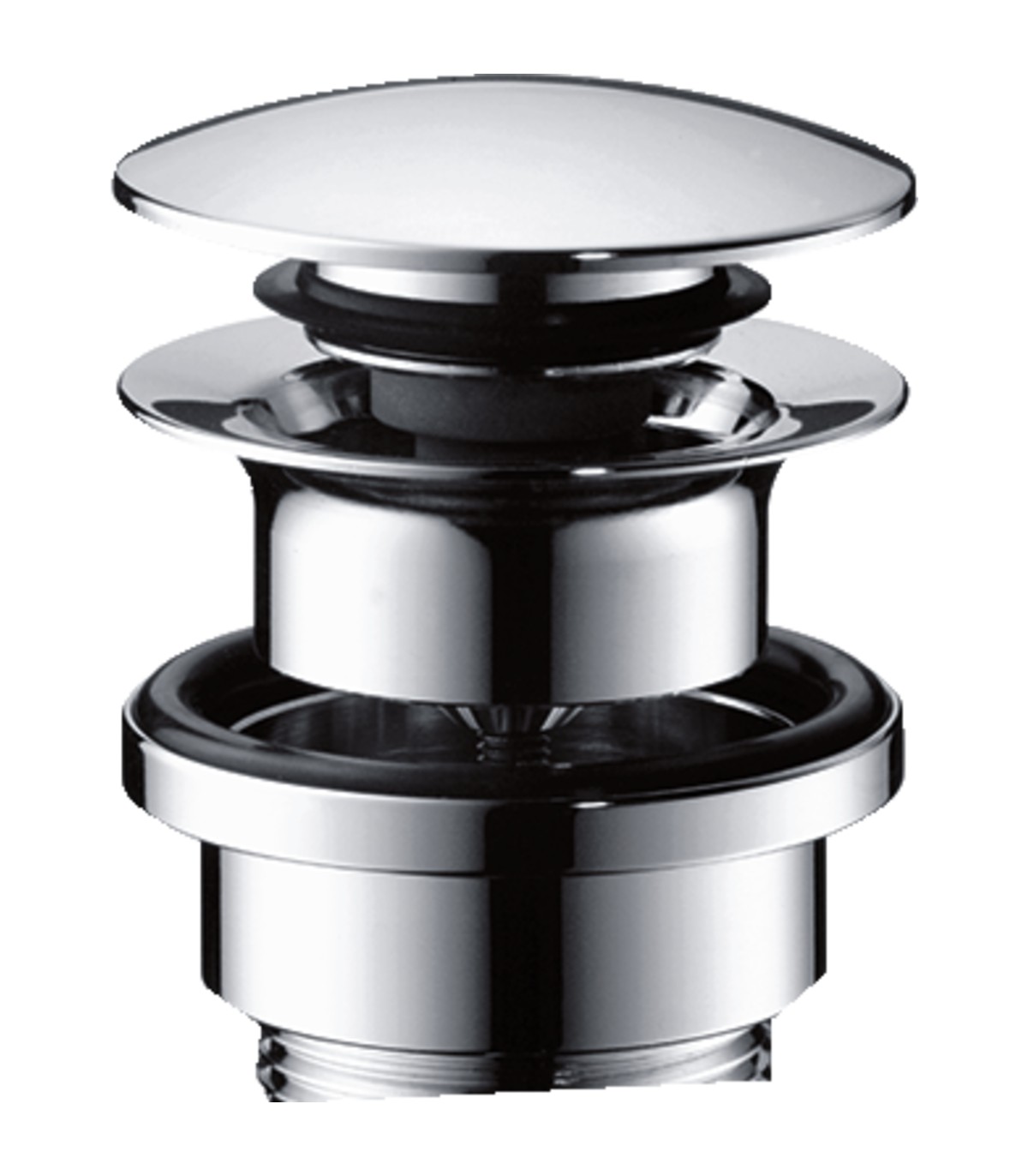 Vaciador automático fabricado en latón cromado, para lavabos y bidé con rebosadero integrado. Sistema de apertura push-open. Acabado cromo brillante.