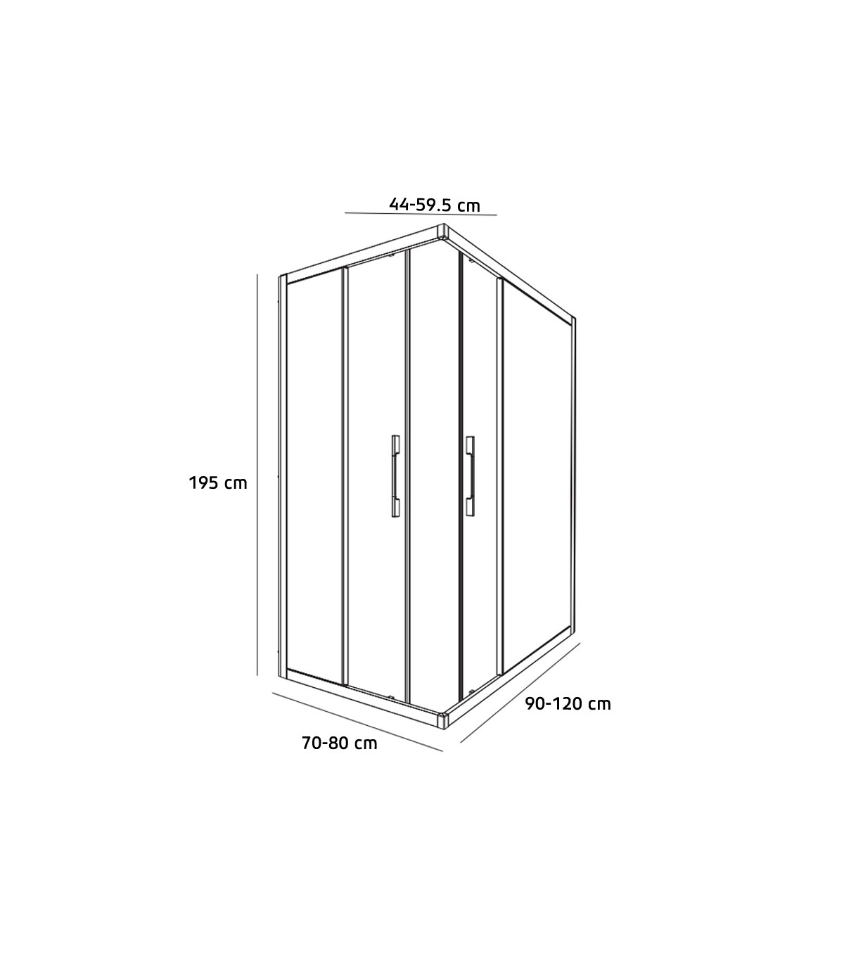 Disponible en cinco posibles medidas. Cristal transparente templado Norma EN-12150 de 6mm. Expansión 25mm. Con rodamiento superior tándem regulable y tándem inferior con muelle. No incluye griferías, sifón ni placa de ducha.