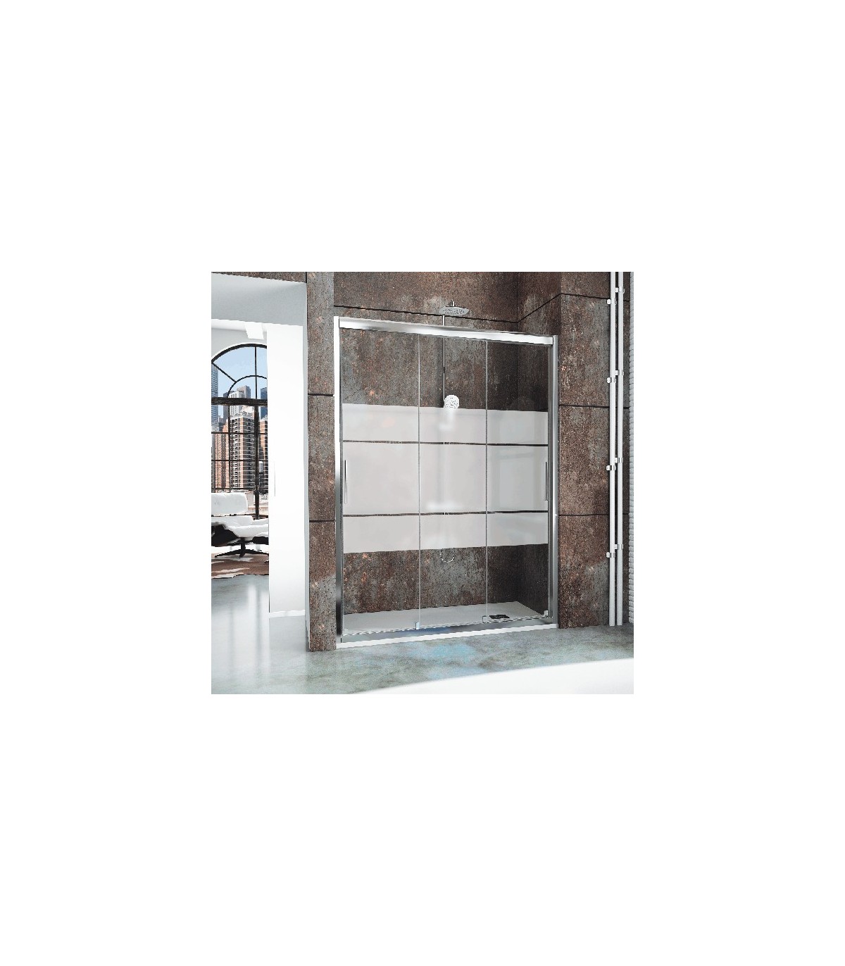 CITY mampara de ducha con 3 hojas correderas y apertura por ambos extremos. Vidrio decorado de 6 mm, perfil anonizado plata alto brillo y cierre magnético. Vidrio con tratamiento antical EasyClean. Liberación de puerta para una fácil y cómoda limpieza.