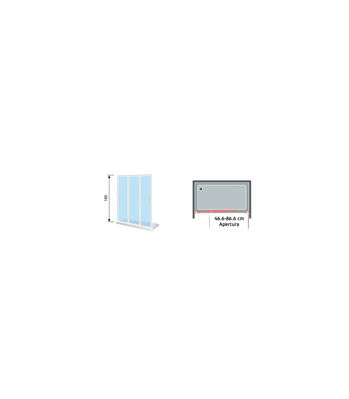 Características del producto, altura de la mampara 1,95 m. Tiradores cromados. Perfil aluminio anodizado plata alto brillo.