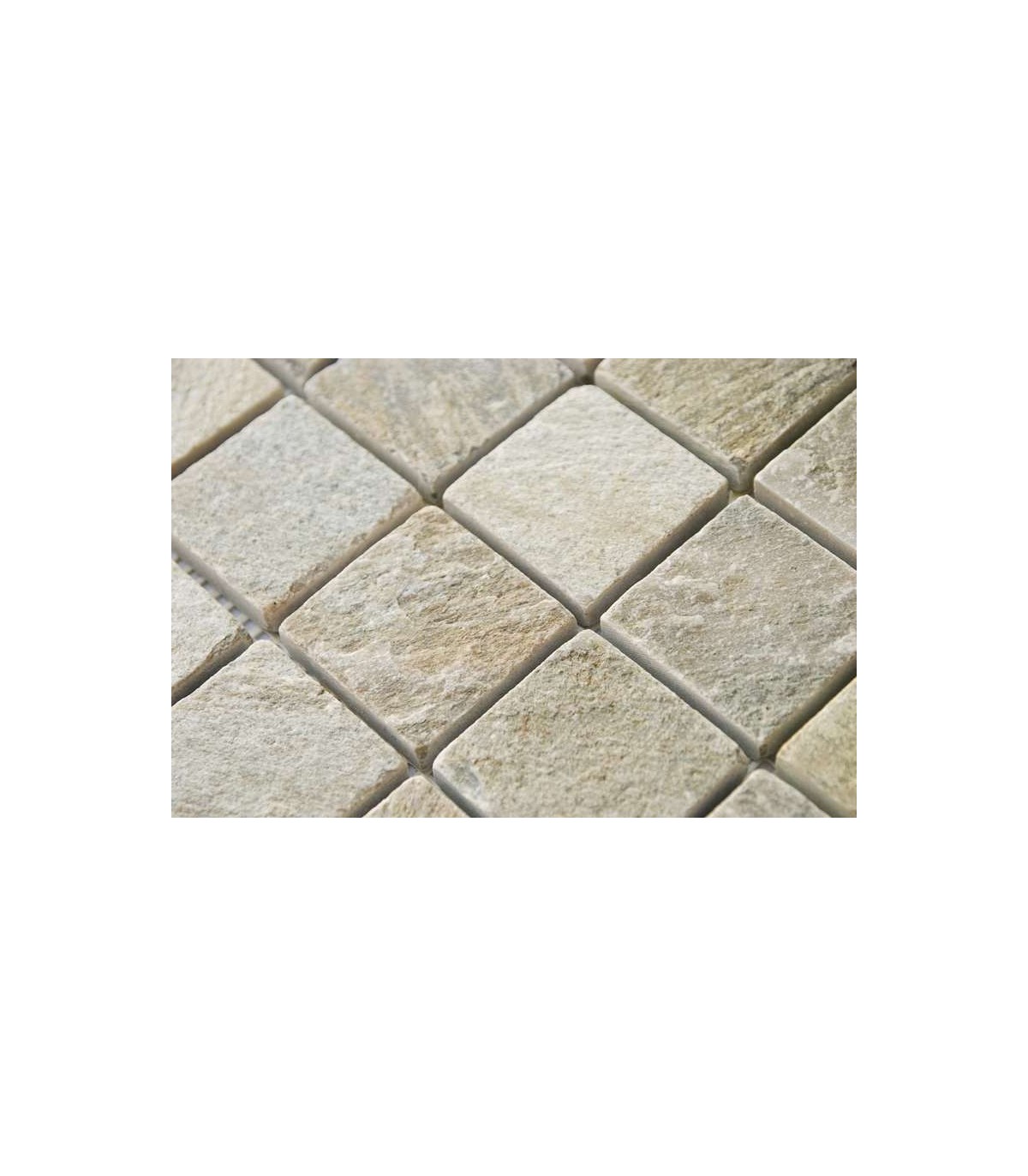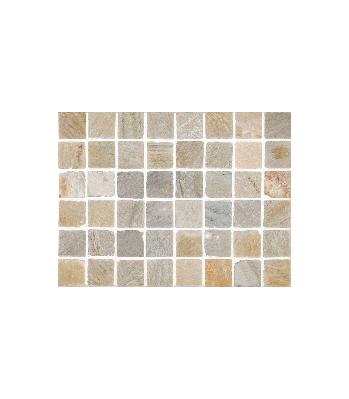 Mosaico de piedra natural sin tratar, cortadas en tacos individuales y enmallados en piezas de 30.5x30.5.