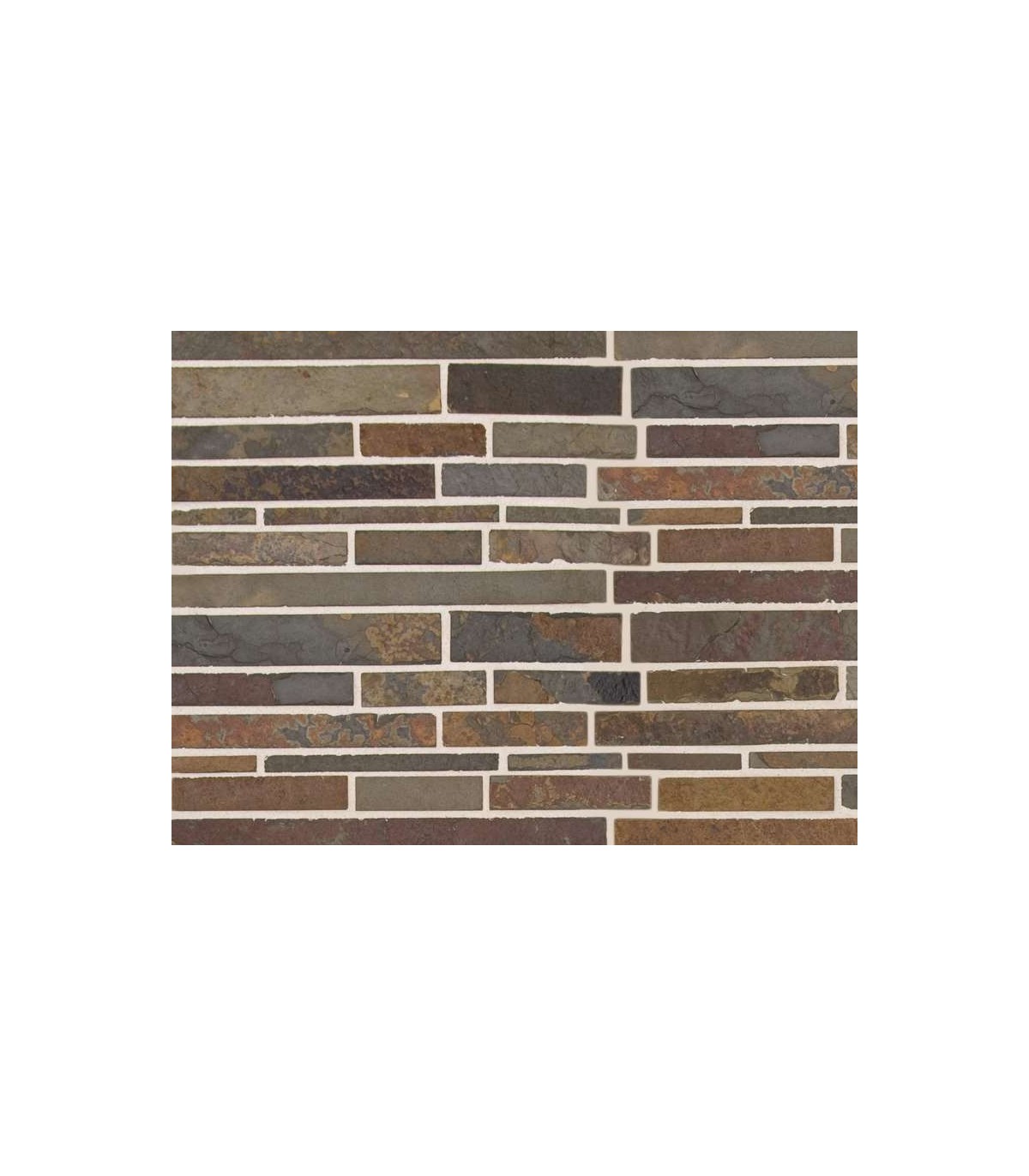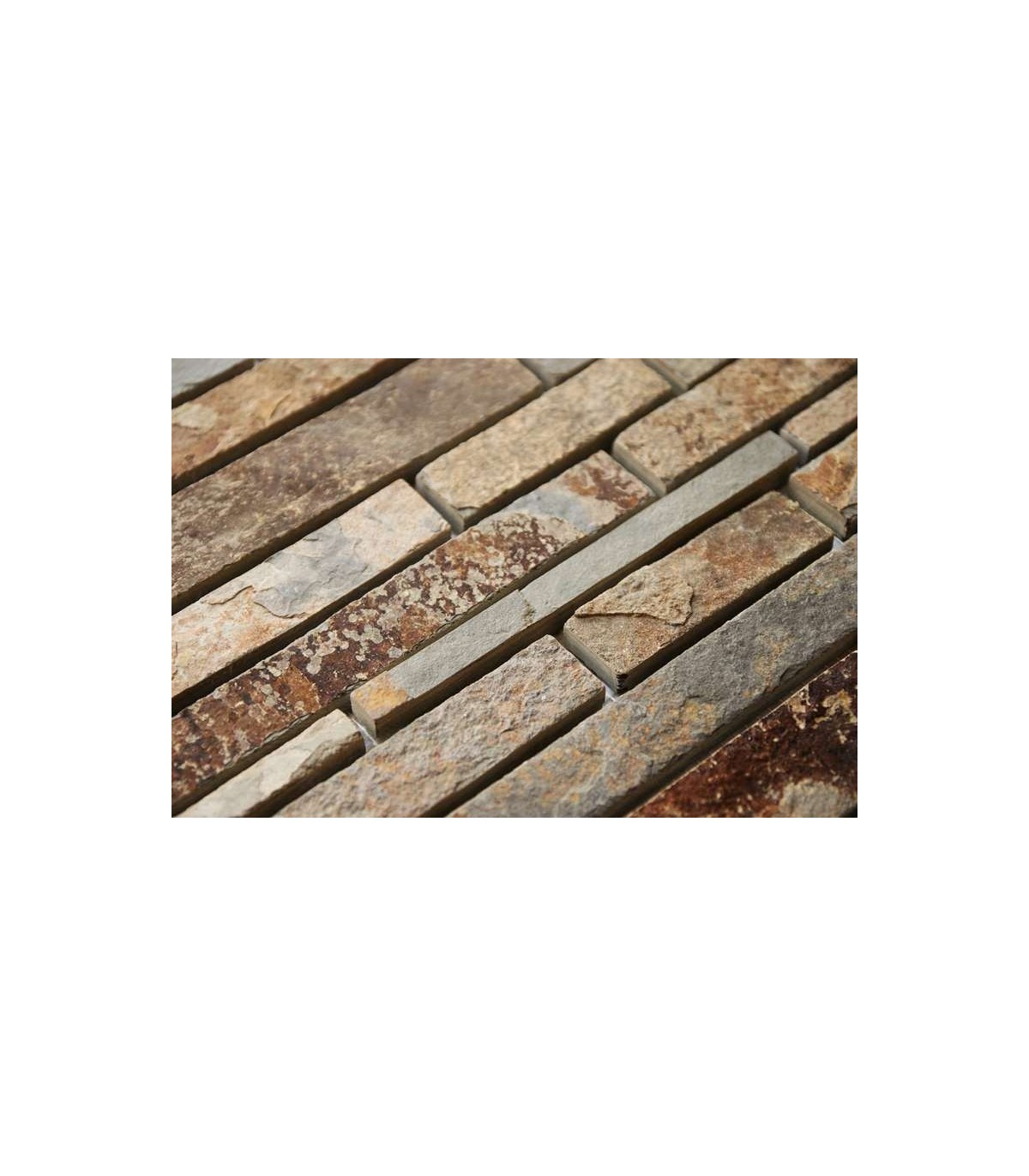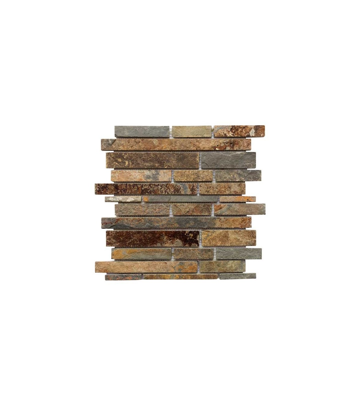 MULTICOLOR Mureto Pizarra natural con tiras de pieza cortadas y enmallada en piezas de 30.5x30.5. Ideal para decoraciones de baños y cocinas, tanto en paredes como suelos. Mosaico de gran adaptabilidad y multiples finalidades decorativas.