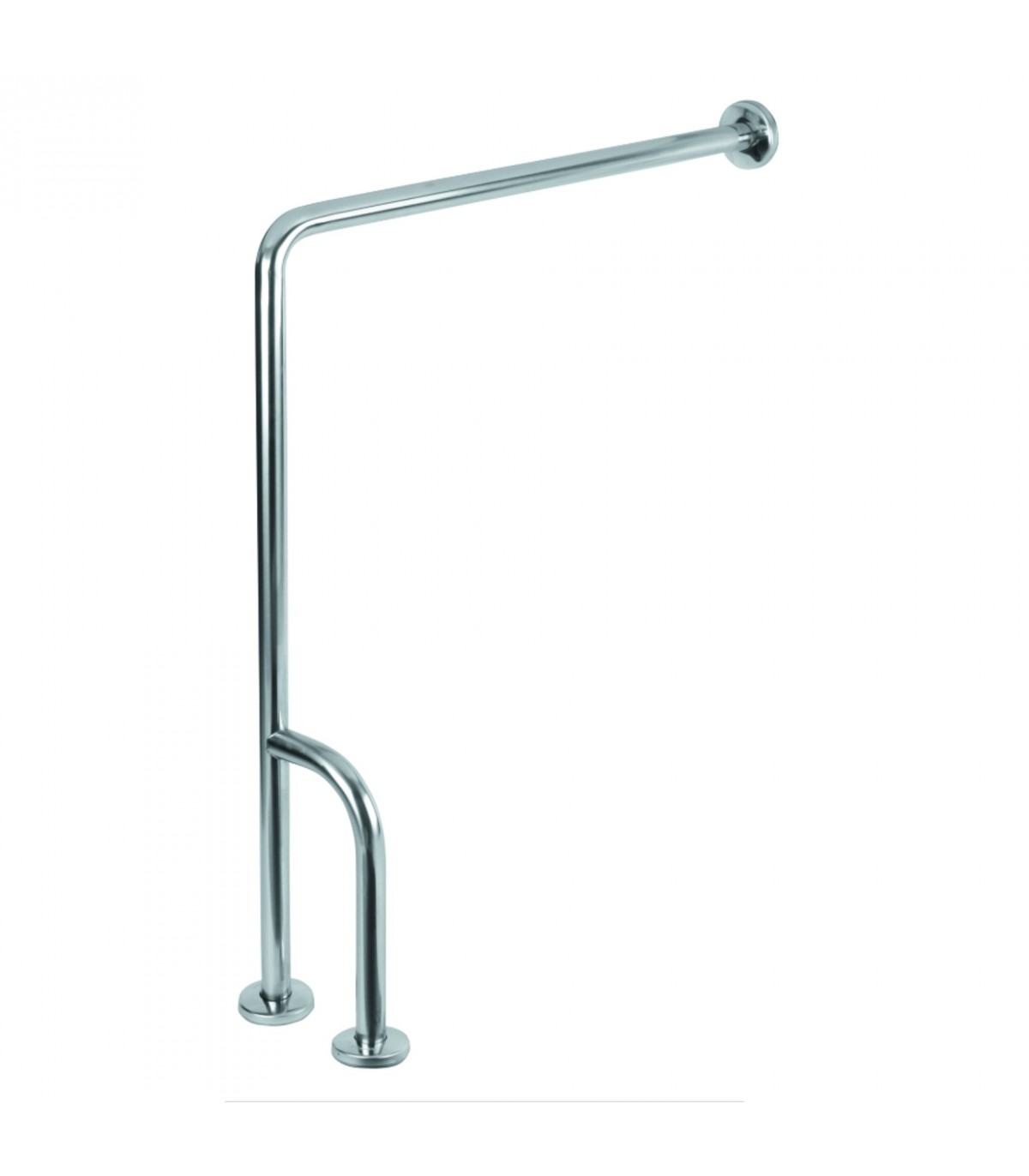 BARRA de ayuda a personas de movilidad reducida. Barra angular con fijación a la pared y dos puntos de apoyo al suelo, para uso con la mano IZQUIERDA. Disponible en otros acabados y también disponible en la versión derecha.