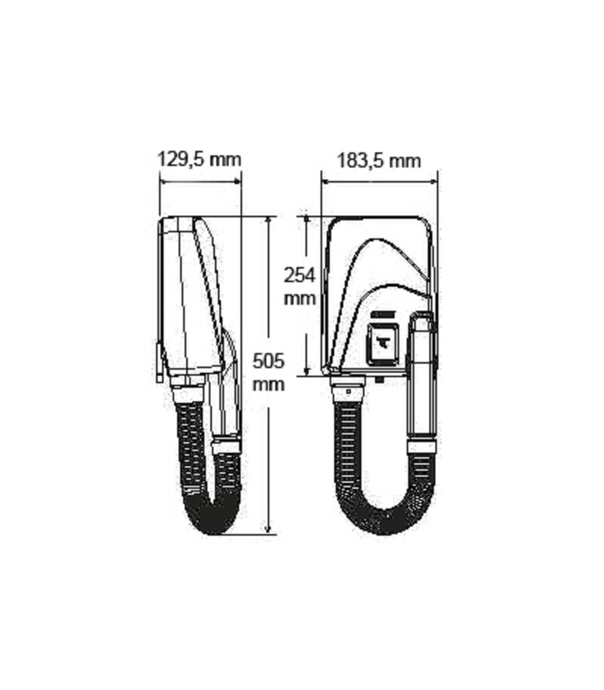 Secador de cabello con limitador térmico de seguridad. Accionamiento automático al descolgar el mango.