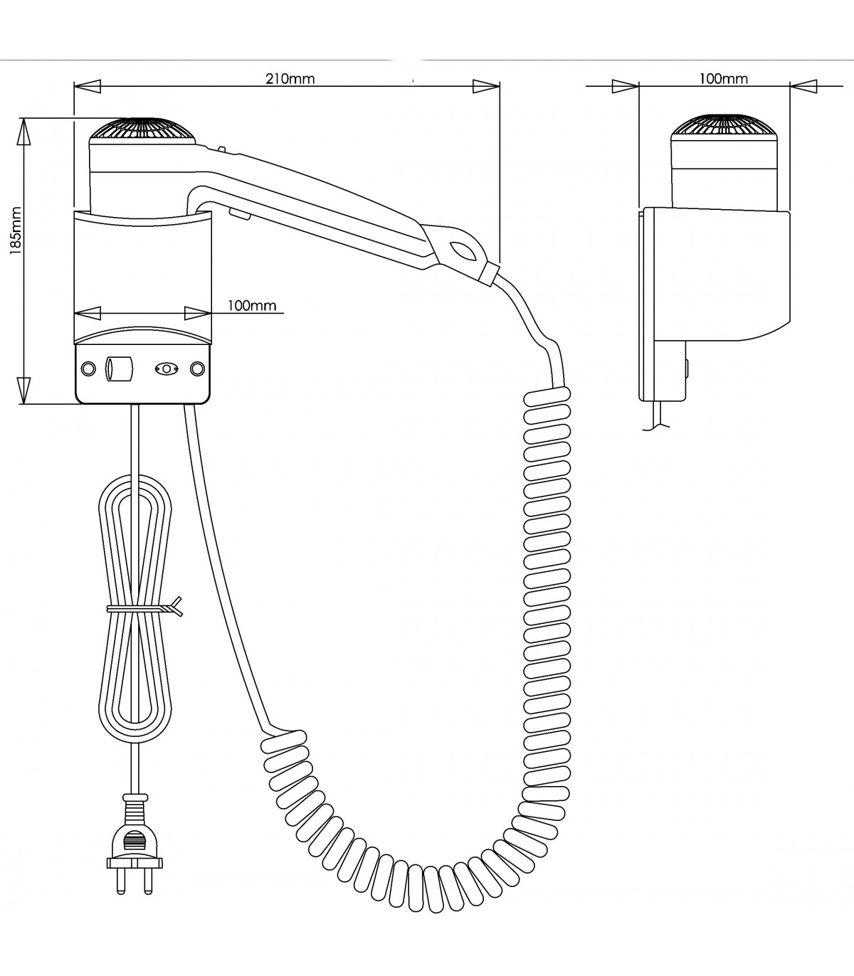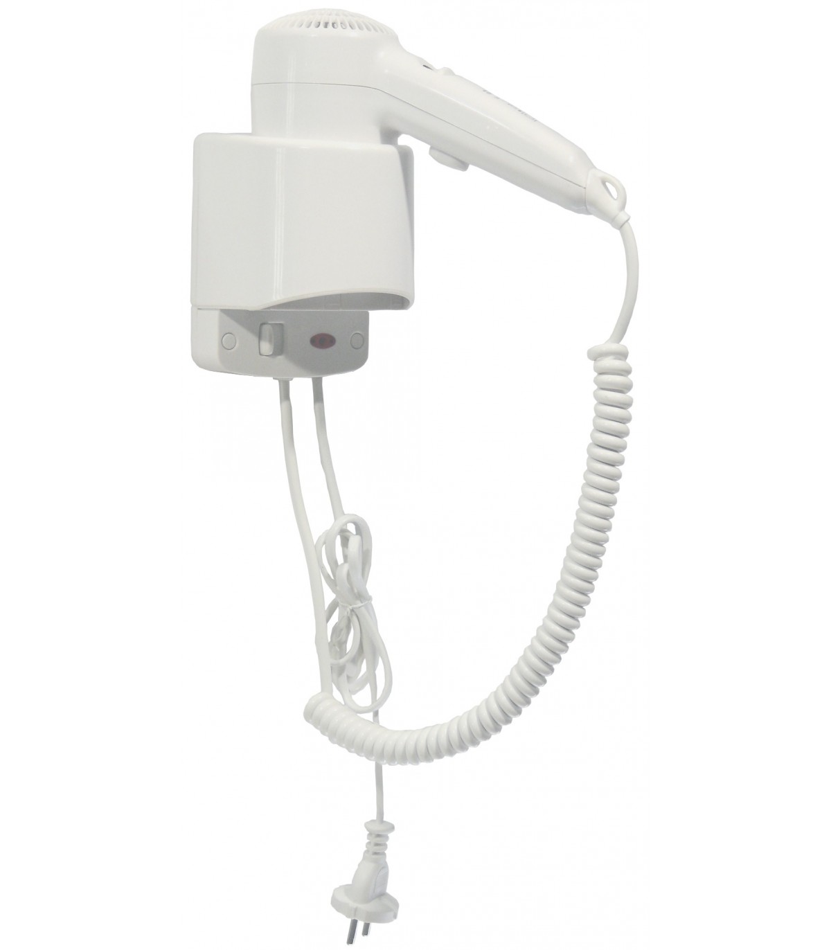Secador de cabello de accionamiento manual, con interruptor de desconexión, soporte pared y 2 velocidades.