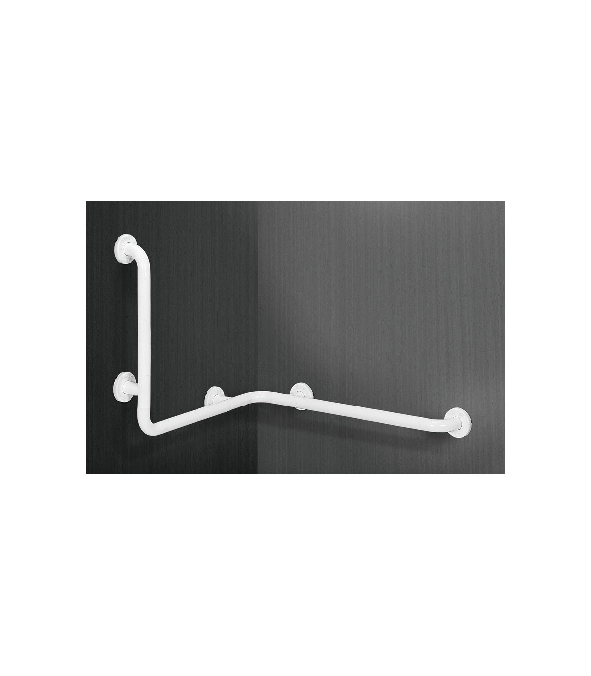 Barra en ángulo para conjunto ducha. Fabricada en aluminio recubierto de nylon.Preparada para colocación a derecha o izquierda.