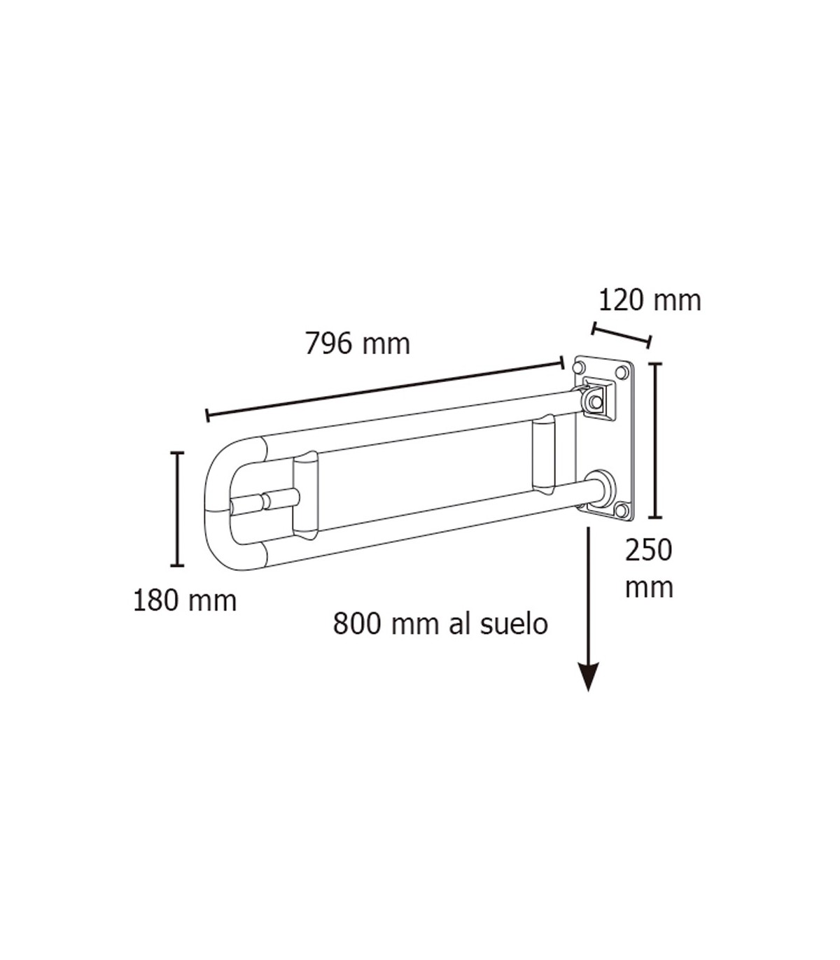 Barra de apoyo mural abatible para lavabos, bidets, inodoros, etc. Fabricada en aluminio recubierto de nylon.