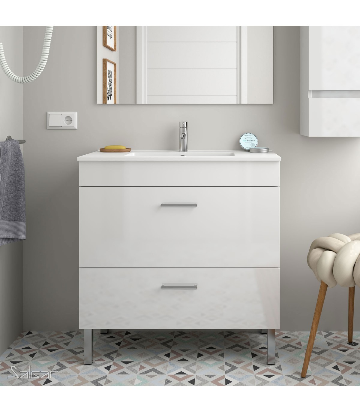 SALGAR ALMAGRO Mueble+Lavabo Blanco Brillo Fondo Reducido