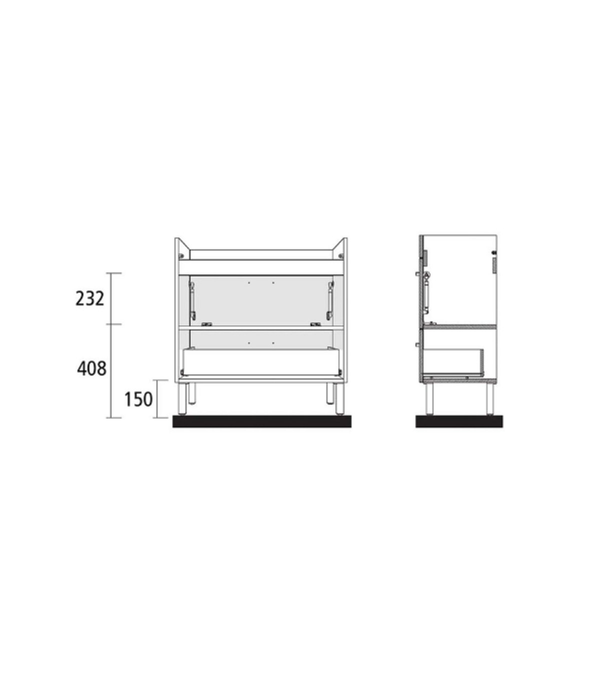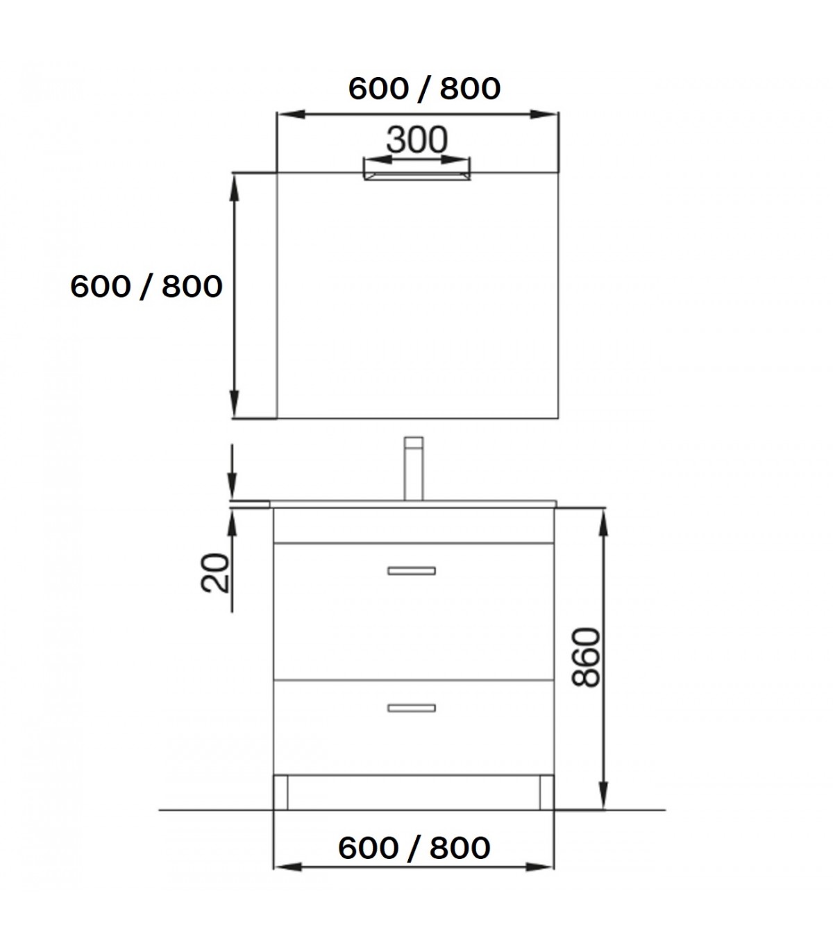 El conjunto está formado por mueble y lavabo blanco brillo + espejo y aplique LED. Mueble Almagro 600/800 de fondo 35 cms reducido 1 puerta superior abatible con amortiguador de gas y 1 cajón de madera, tiradores acabados en cromo situado en el frente del mueble aunando funcionalidad y diseño. Frente y laterales fabricados en tablero de partículas laminado de 16 mm con cantos en PVC.