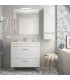 Lavabo fabricado en porcelana blanca que asegura la máxima resistencia al desgaste y color blanco puro para siempre. Espejo de luna pulida en medidas iguales al ancho del mueble. Aplique acabado en cromo brillo. Dispone de una luz led de 6w y con resistencia al agua IP 44. Sujeción multienganche.