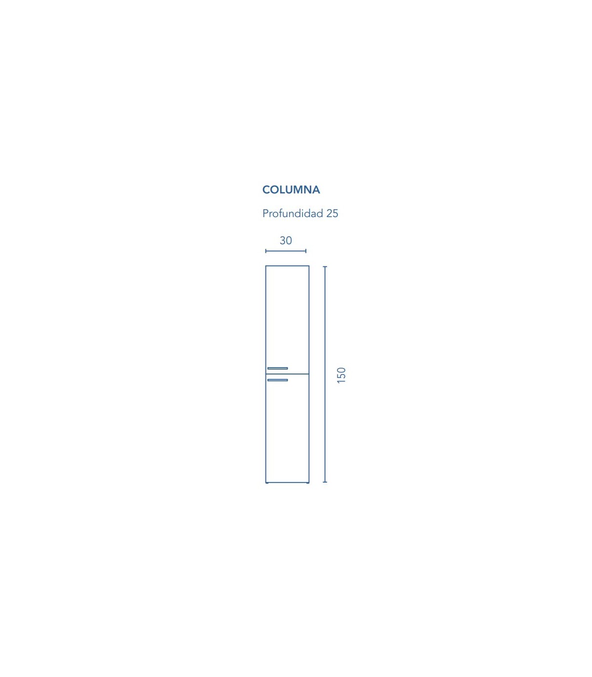 EASY Columna auxiliar lacada BLANCO BRILLO, a juego con el mueble con lavabo del mismo nombre. Dos puertas con cierre amortiguado. Reversible para elegir el sentido de apertura de puertas. Distribuidor interior con 1 estante fijo y 2 estantes móviles, ambos de madera. Medidas de la columna 150x30 y fondo 25 cms.