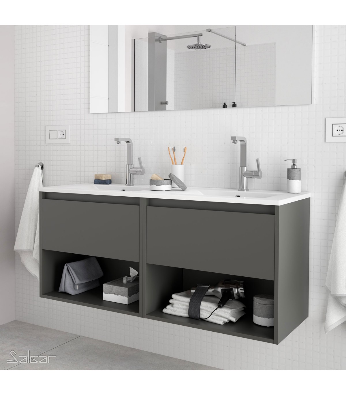 SALGAR 81298 NOJA Mueble+Lavabo Con 2 Cajones 120 Gris Mate