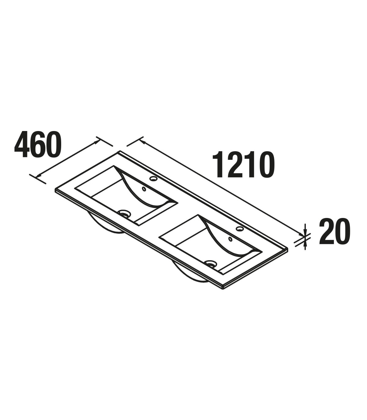 Mueble suspendido Noja fondo 45 cms con frente y laterales fabricados en tablero laminado de 16 mm con cantos en PVC. Lavabo de 120 con 2 senos de porcelana blanca brillo que asegura la máxima resistencia al desgaste.