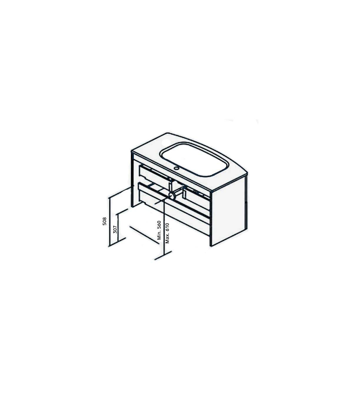 No incluye grifería. Mueble fabricado con tablero de 16 mm, tirador metálico cromo brillo, cajón con cierre amortiguado. Espejo MURANO de 70 cms de alto y mismo ancho que el mueble. Reforzado con tablero y canteado en gris plata. Aplique LED lucce 30. Lavabo de Lavabo de porcelana modelo Trend, con fondo 49 cm y seno de gran profundidad.