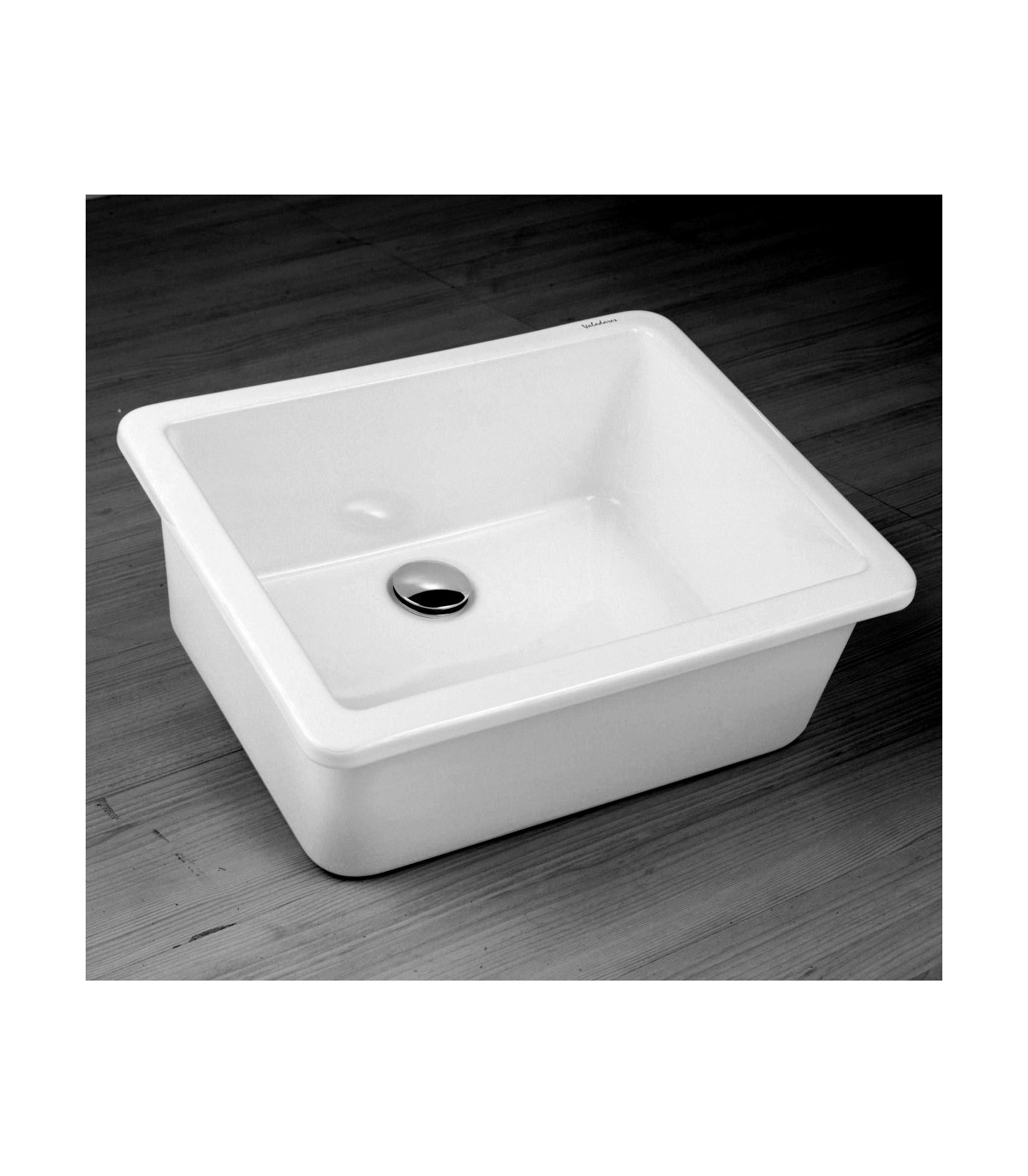 SILVES es una pila rectangular, fabricada en porcelana blanca sanitaria de medidas 51x40 y 18,5 cms de alto. Dispone de borde perimetral para la instalación en encimeras. La pileta no dispone de rebosadero, por ello es recomendable usar una válvula click clack (ver productos relacionados).