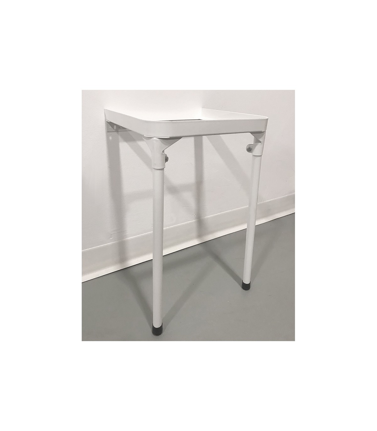 Soporte de lavadero para el modelo Bingo de Aquore. Construidos en acero laminado en Frío y acabados con una capa de pintura al epoxi-poliester de color blanco. Fácilmente instalables para el público en general, únicamente dos taladros en la pared y atornillarlos.