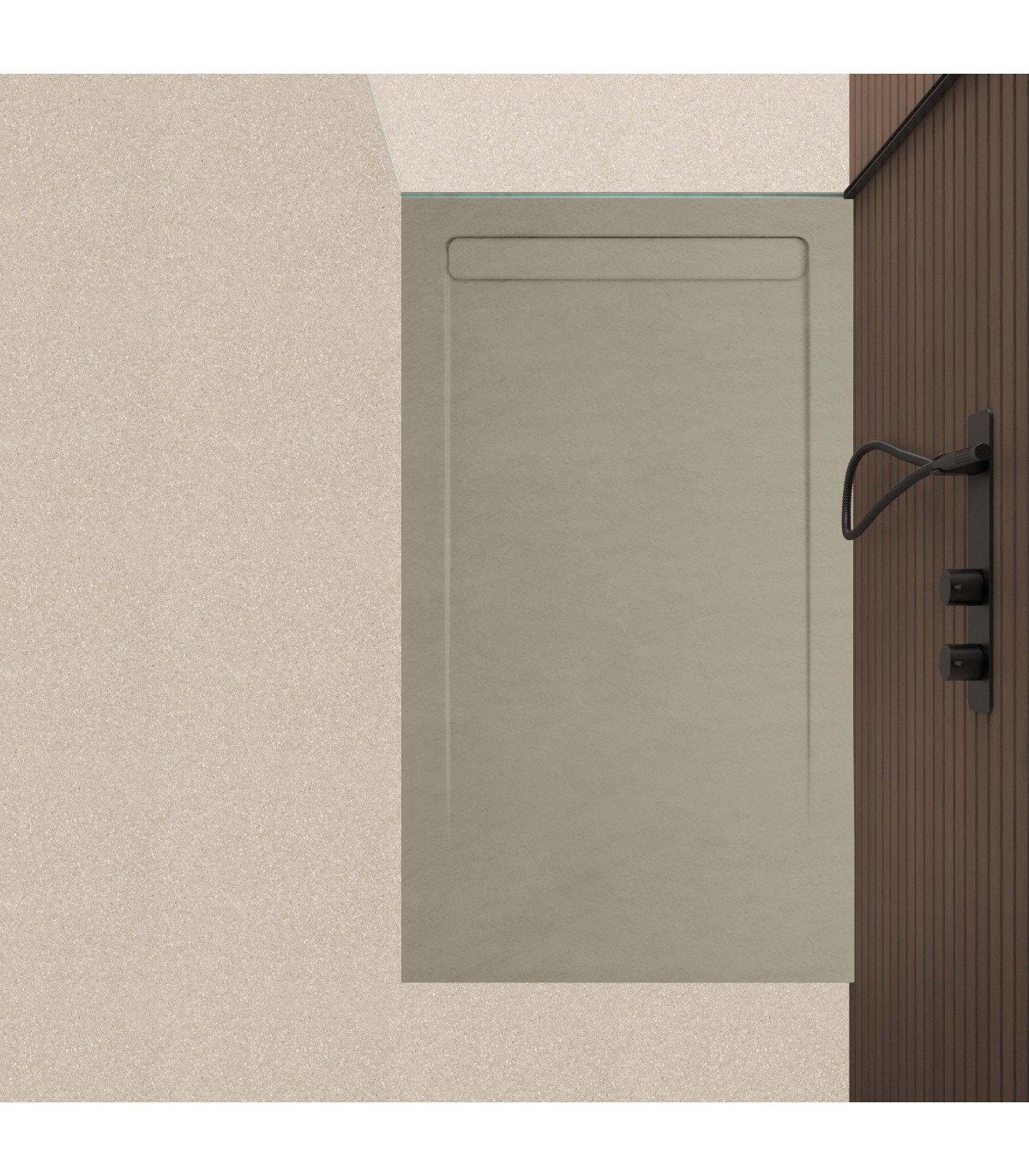 Plato de ducha extraplano fabricado en material con formulación exclusiva. El material permite desarrollar platos de ducha de carga mineral totalmente antideslizantes. Textura de pizarra. Aporta mayor resistencia a cambios de temperatura, a la acción de los rayos ultravioleta o a la hidrólisis.