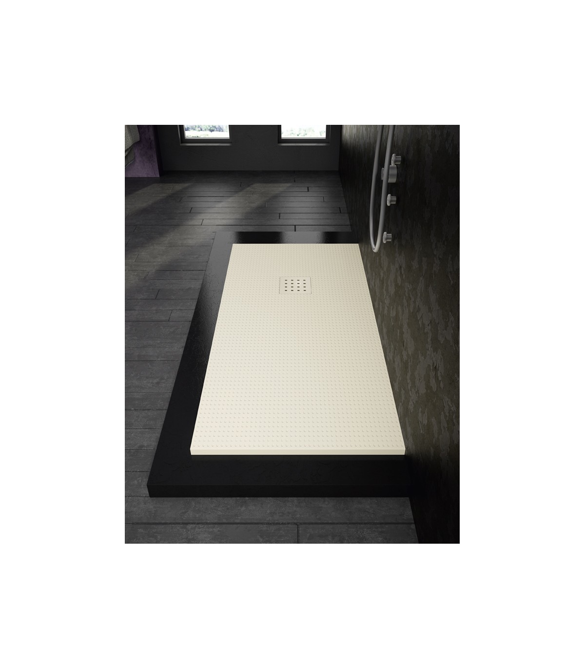 Plato de ducha fabricado mediante resina y carga minerales teñidas con pigmentos naturales para darle el tono de color, con propiedades hidrófugas. Se sirve en un embalaje de madera para garantizar que llega a su destino en perfectas condiciones. Incluye válvula de gran caudal, con rejilla del mismo color que el plato.