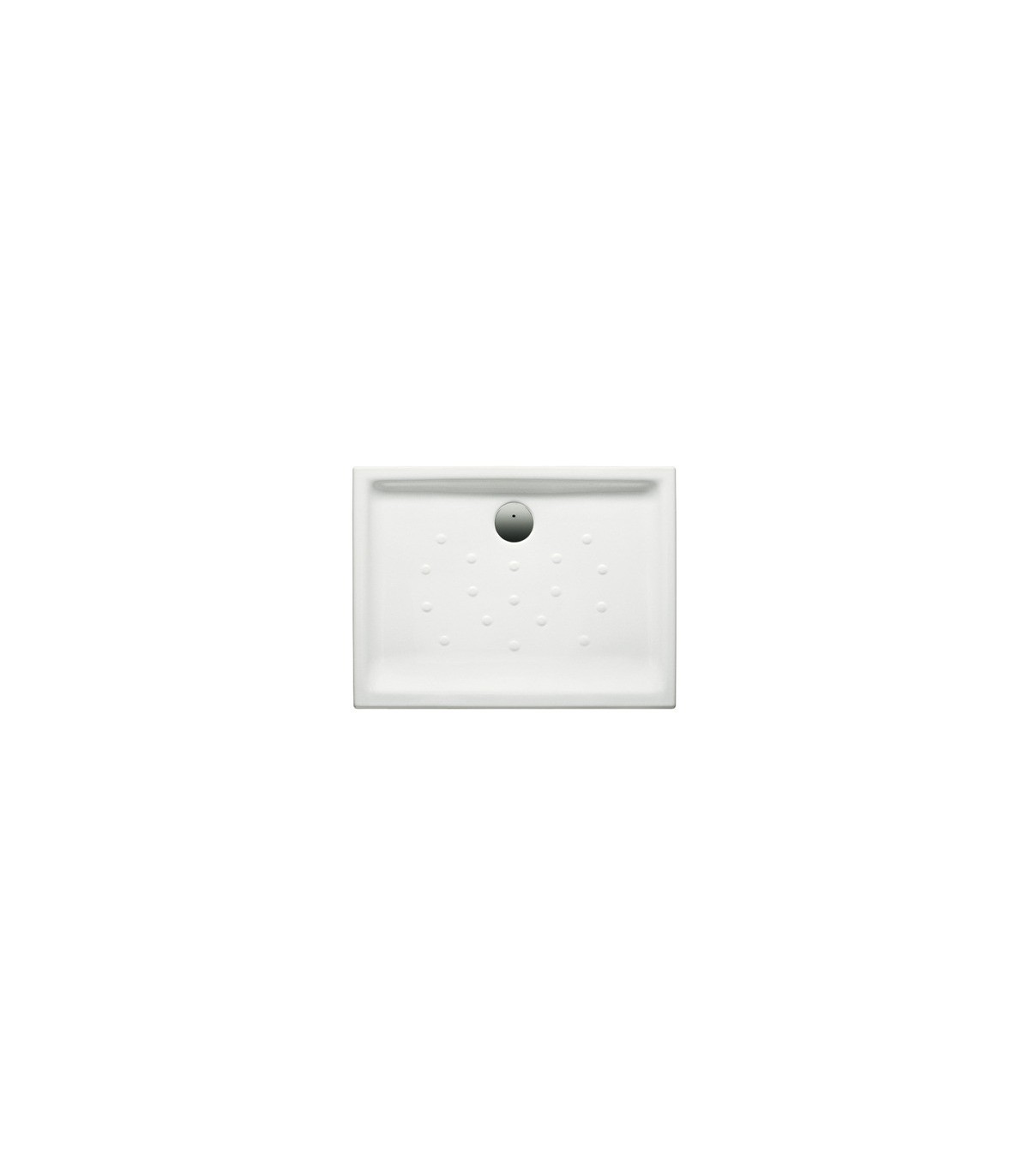 Plato de ducha fabricado en porcelana blanca sanitaria.Desagüe de 90 mm no incluido con el plato. La altura del plato es 8 cm para los platos de 70 cm de ancho y 6,5 cm para el resto de medidas.