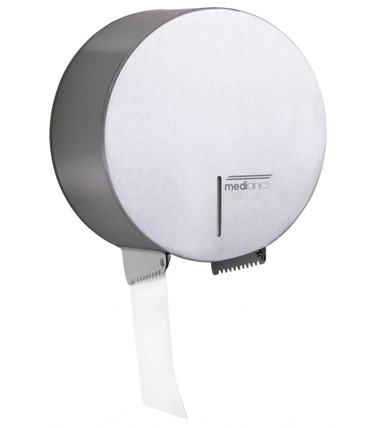 material:Acero inox AISI 304 | acabado:Satinado Dspensadores de papel higiénico industrial Los dispensadores de papel higiénico Mediclinics ofrecen soluciones adecuadas tanto para papel bobina como para rollo de papel estándar. La gama está pensada para poder equipar cualquier baño público
