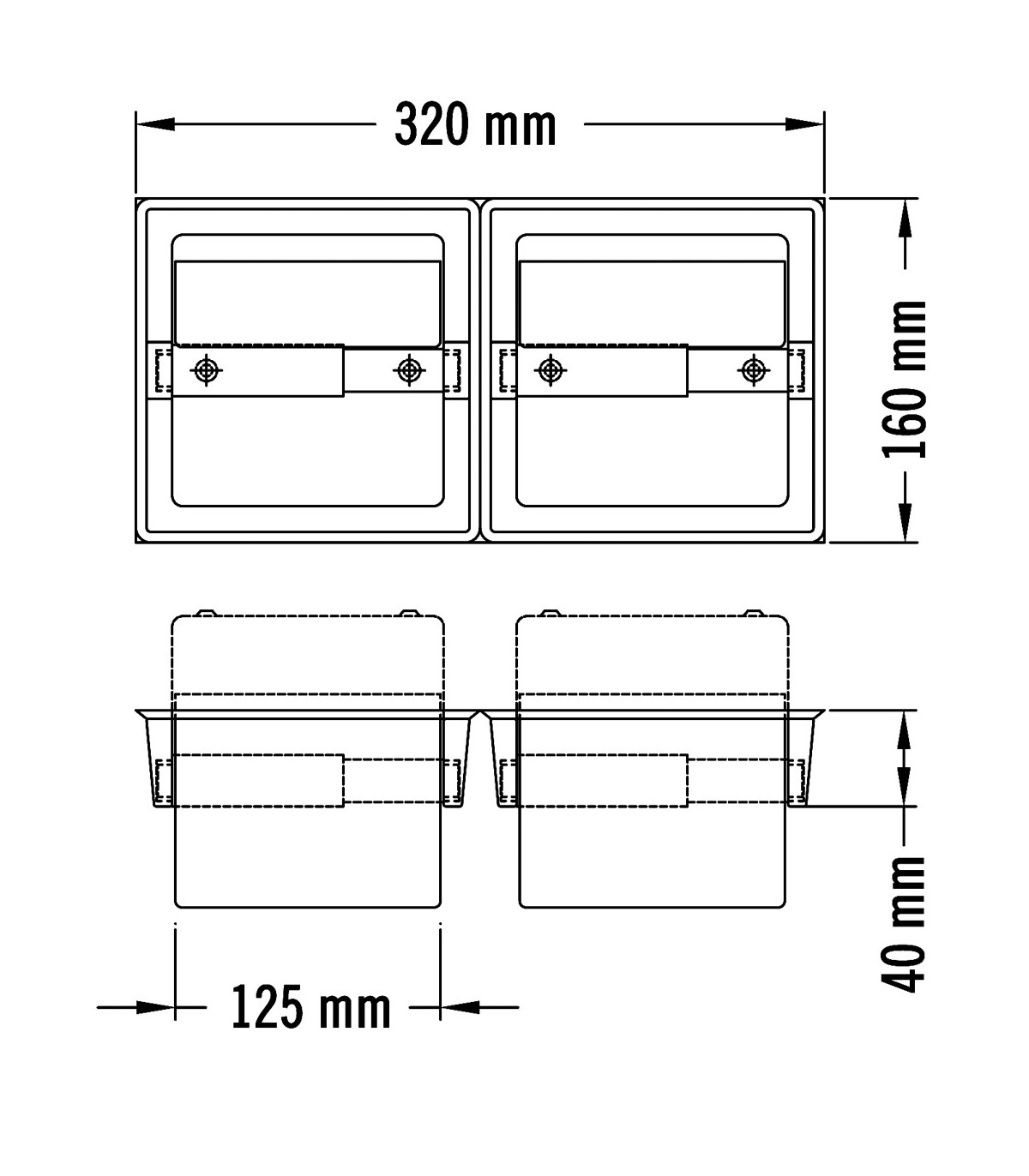 Portar. Doble Empotrado Inox Brillante Portarrollos De Papel Higiénico Doble, De Acero Aisi 304, Acabado Brillante, Con Tapa Protectora, Para Empotrar En Pared. Adecuado Para El Sector Hostelero, Como Equipamiento De Baño De Las Habitaciones De Hotel. Mod