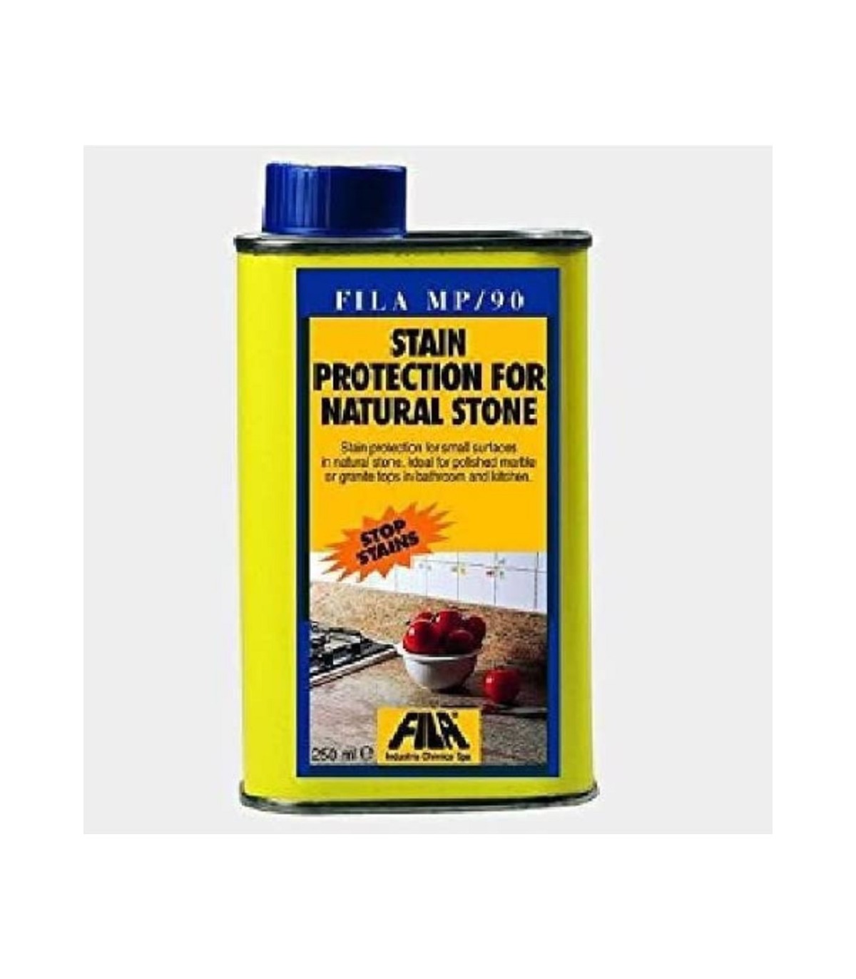 Protector antimancha transparente en base disolvente para piedra natural, mármol, granito, aglomerados, gres porcelánico pulido. Protege y evita la penetración en profundidad de manchas orgánicas, facilitando su eliminación, en gres porcelánico pulido, terrazo pulido y piedra natural pulida brillante (ej. granito, mármol, caliza, etc.) Envase de 250 ml.