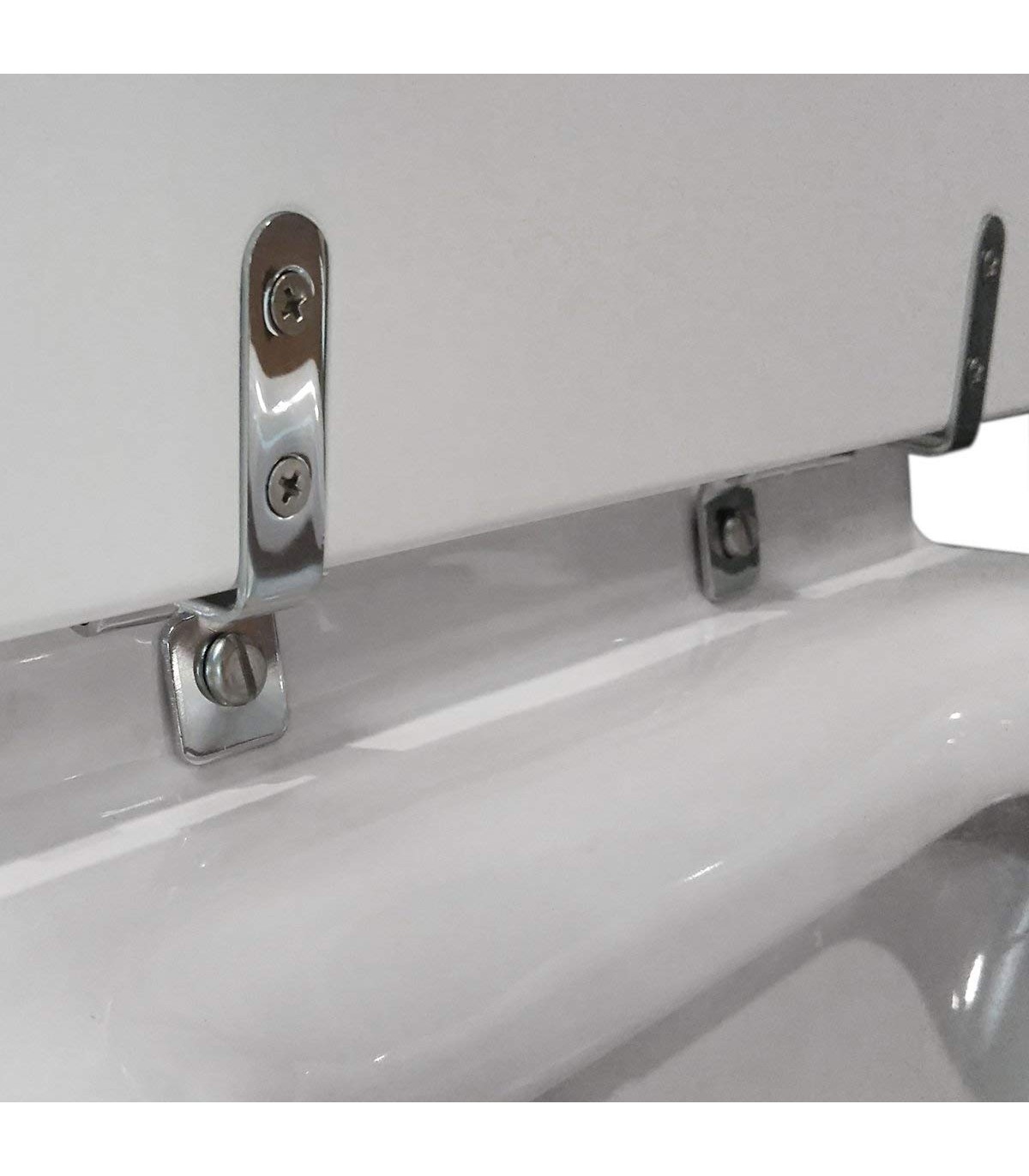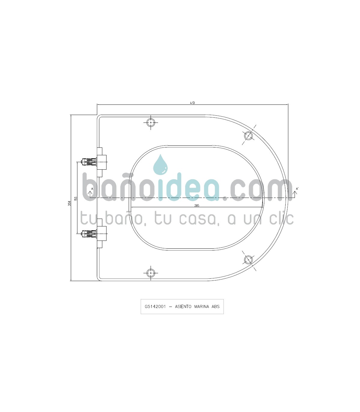 Tapa con asiento para inodoro modelo MARINA de la marca Gala. Incluye juego de bisagras inoxidables y tornillos de fijación HORIZONTAL. Caída normal. MARINA tapa con asiento para inodoro de Gala anterior al 2.007