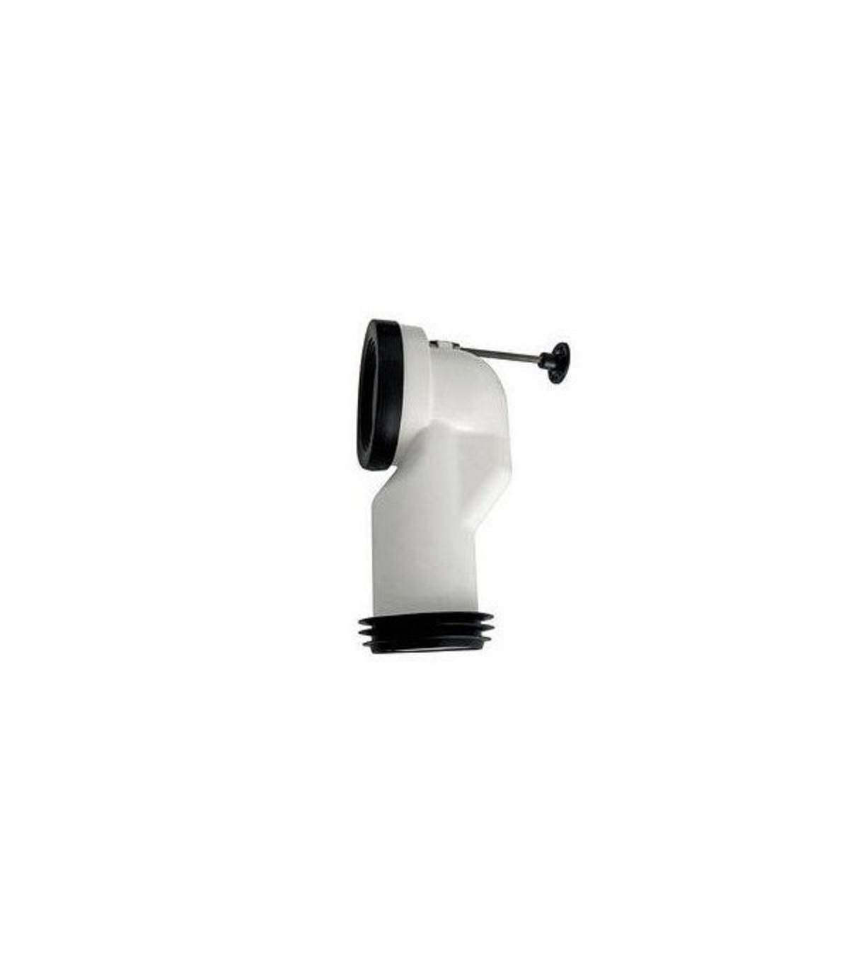 Codo de evacuación al suelo para inodoros de salida dual con desagüe en el suelo a 15 cms retirado de la pared. Incluye tornillo de fijación para hacer tope sobre la pared Ref. AV0013100R