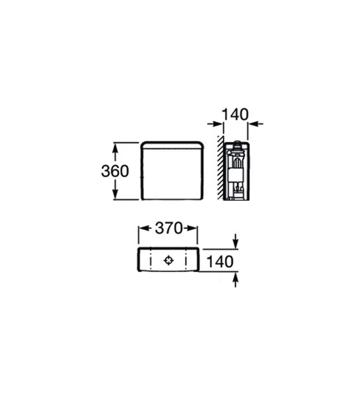Cisterna de doble descarga 4,5/3L con alimentación inferior para inodoro compacto Meridian de Roca. Incluye sistema de fijación, mecanismo de alimentación y mecanismo de descarga. Toma de agua en posición inferior izquierda.