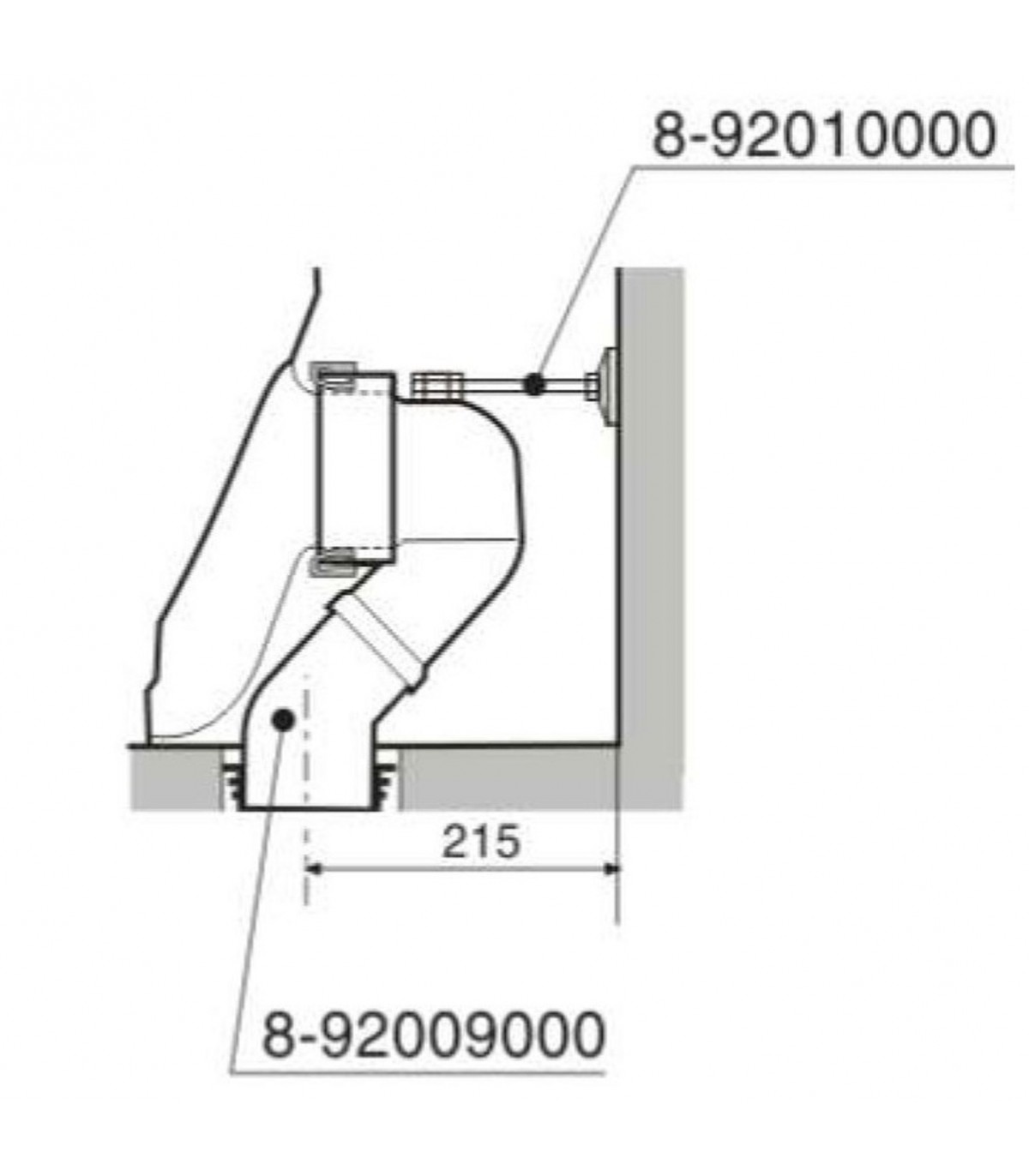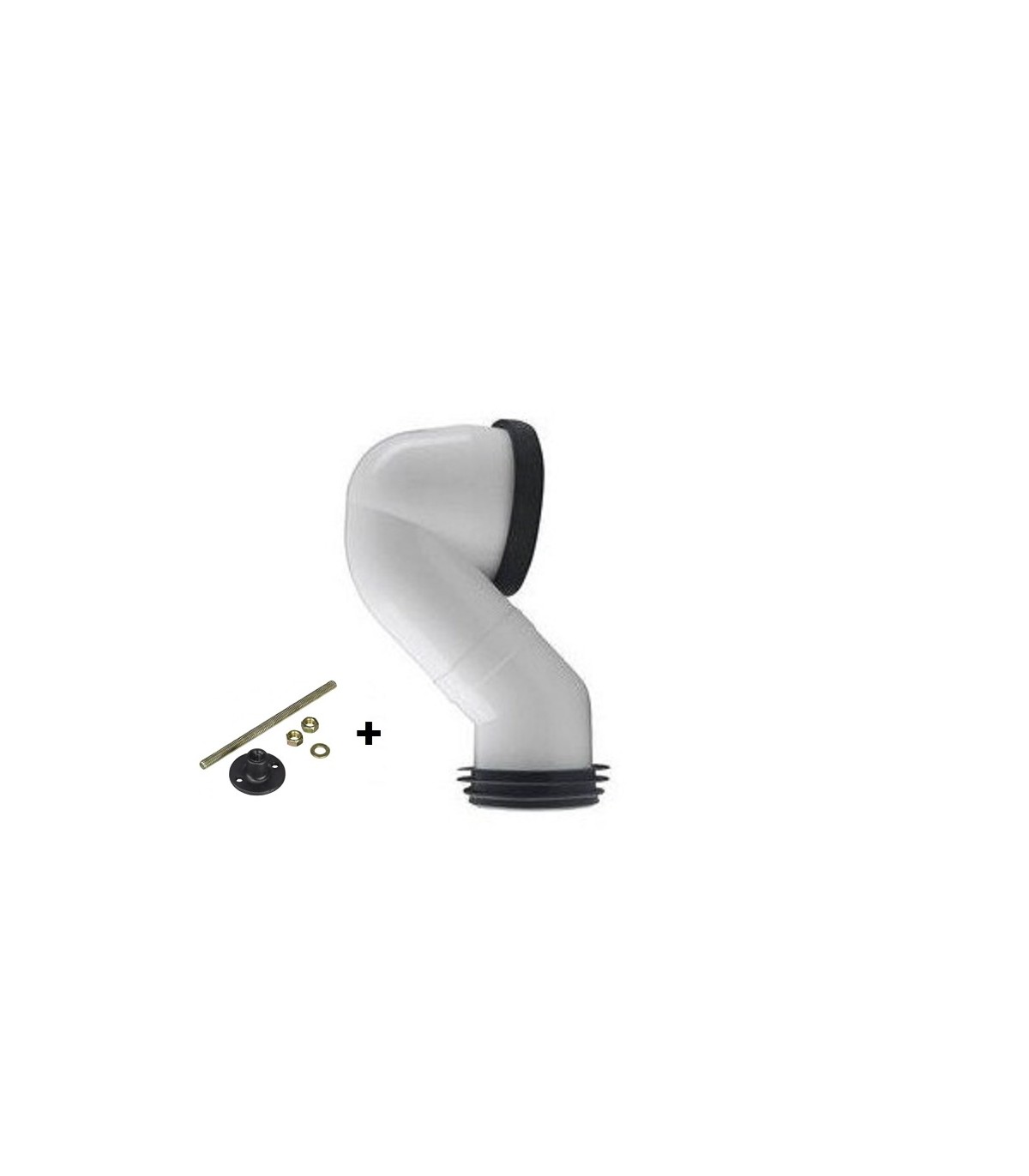 Codo de evacuación al suelo para inodoros de salida dual con desagüe en el suelo a 21 cms retirado de la pared. Incluye tornillo de fijación para hacer tope sobre la pared Ref. AV0013100R