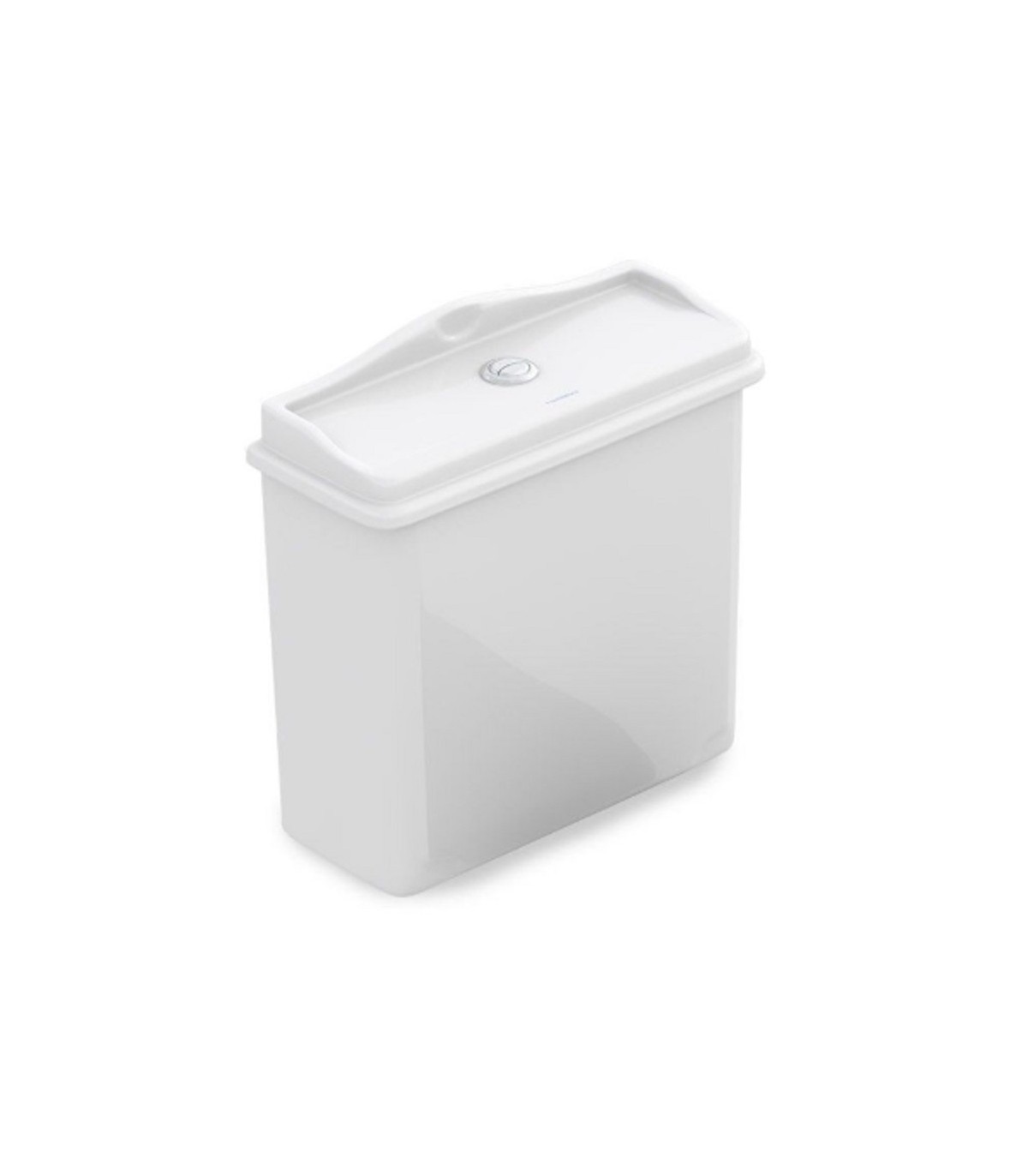 Cisterna de doble descarga 4,5/3L con alimentación inferior para inodoro compacto Meridian de Roca. Incluye sistema de fijación, mecanismo de alimentación y mecanismo de descarga. Toma de agua en posición inferior...