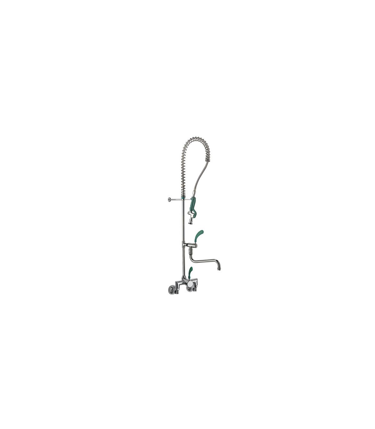Grifo-ducha industrial con brazo flexible forrado de plástico transparente y especialmente indicado para uso alimentario.