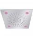 Rociador ducha INOX a techo CROMOTERAPIA Anticalcárea. 500x500 mm. La luz, previa conexión a corriente, se enciende con el paso del agua, sin necesidad del interruptor. Descarga la ficha técnica aquí