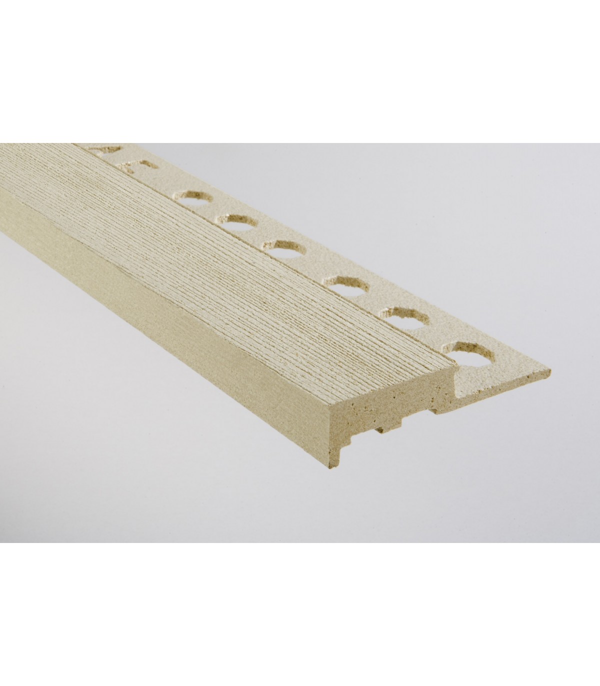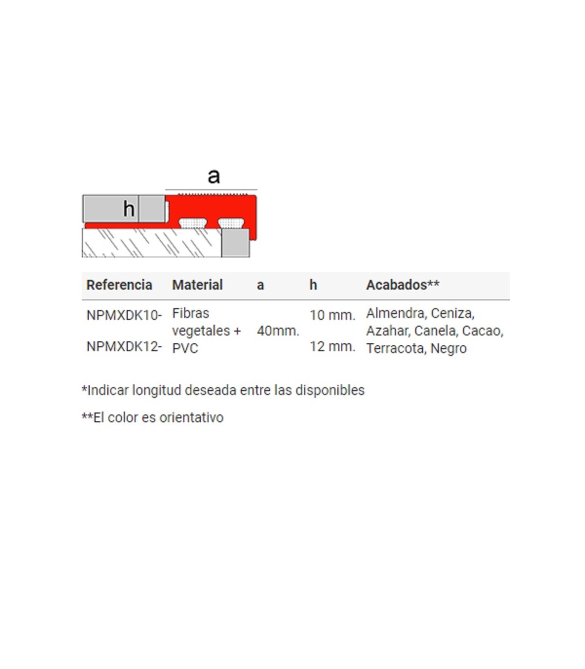 Características del Producto. Perfil para remate de peldaños fabricado en Maxi, material exclusivo de Emac® perteneciente a la familia de los WPC (Wood Plastic Composites) que incorpora fibras vegetales en su composición y contribuye, de esta manera, a la conservación del Medio Ambiente. Maxi es un material muy resistente que ha sido sometido a múltiples ensayos para certificar sus propiedades.