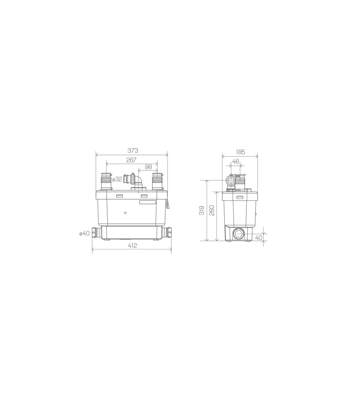 El SANICUBIC 2 XL es una estación de bombeo de gran capacidad (depósito de 120 litros) que puede adaptarse perfectamente a pequeños edificios, locales profesionales y mucho más. Evacúa las aguas negras procedentes de...
