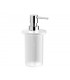 Accesorios de baño fabricado en latón cromado brillante y aluminio, con contenedor de cristal satinado.